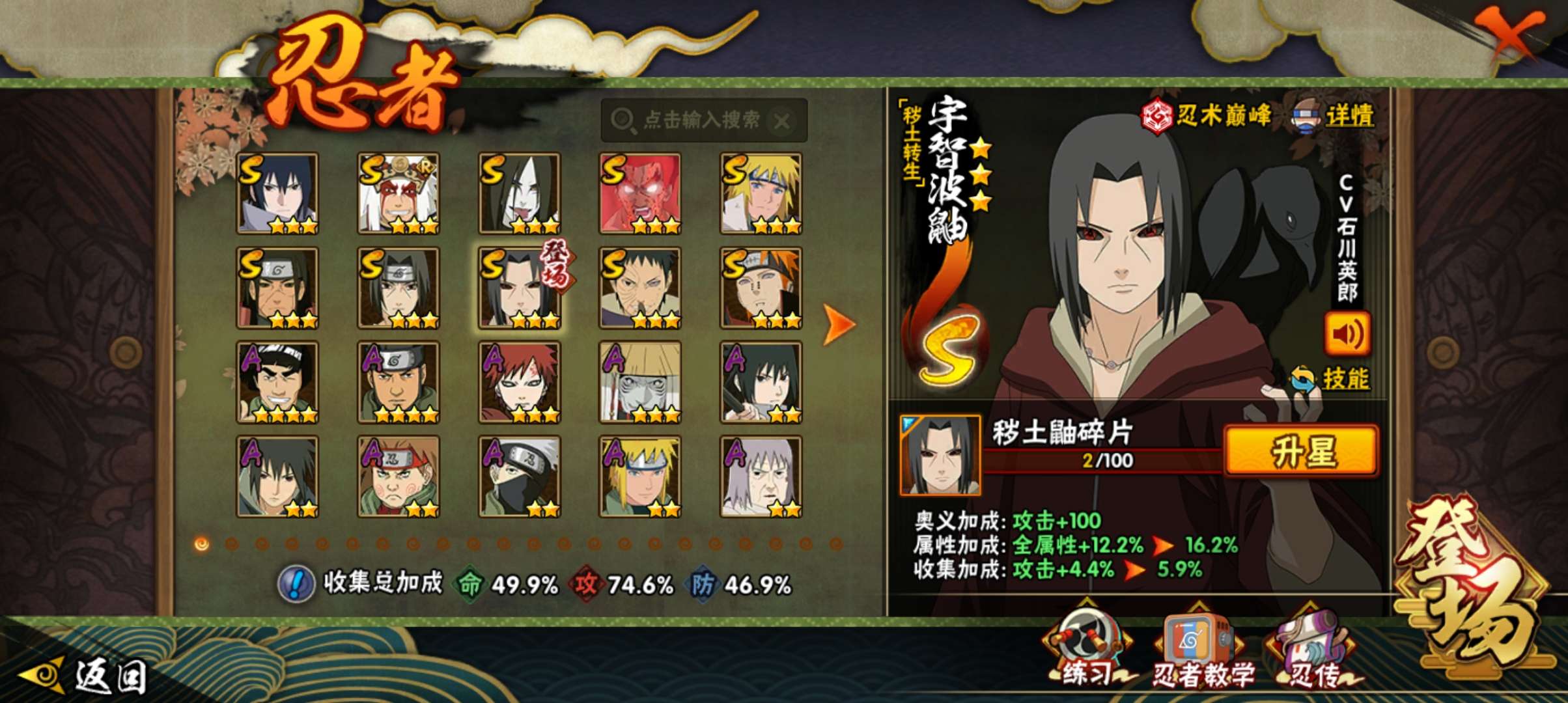 9S级忍者数-30A级忍者数【S级忍者】:宇智波斑「秽土转生·解」(3星),