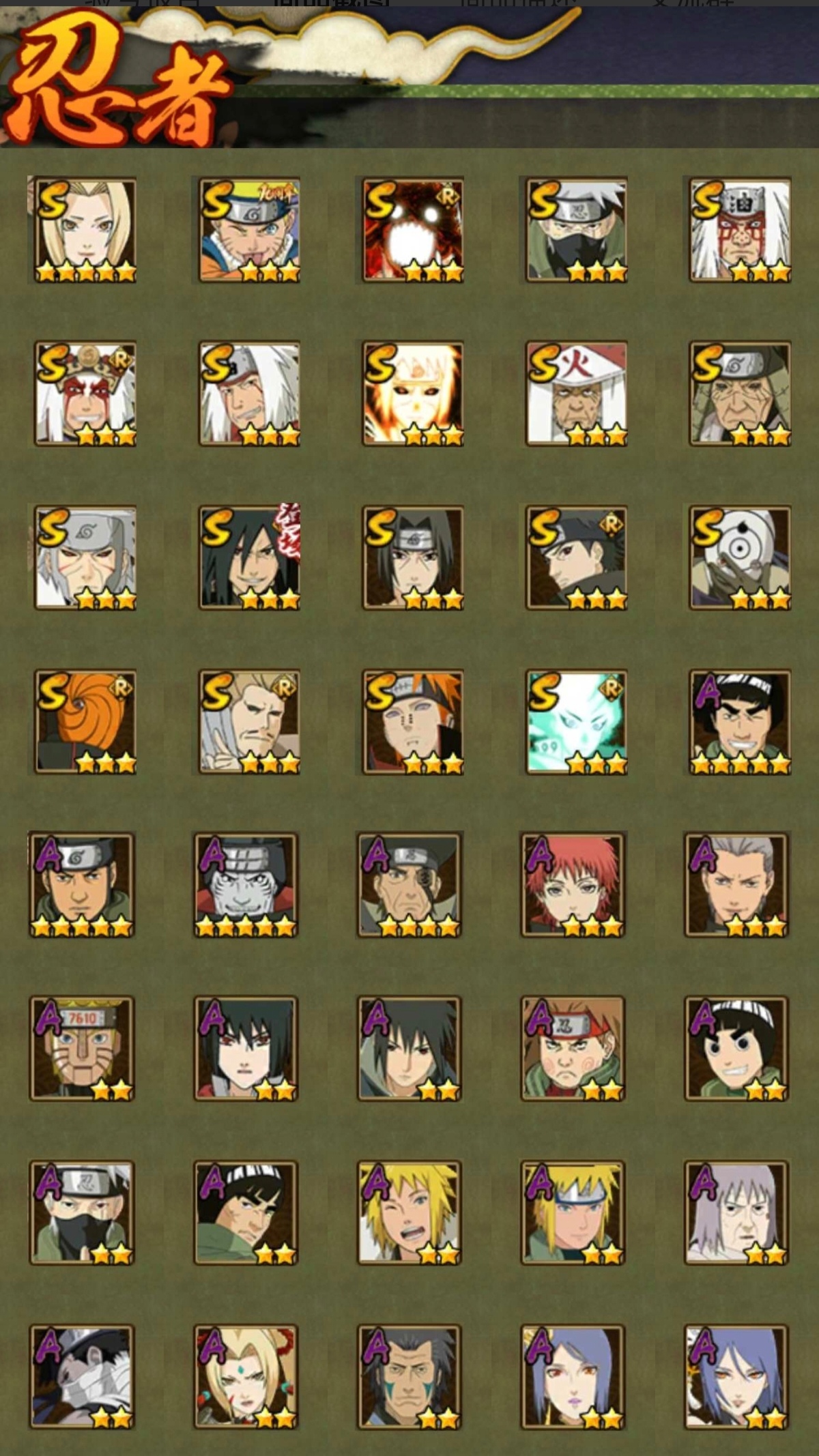 36个S,7个198A忍,1个祈愿忍者(忍战凯)1个298暴怒小孩,还有最终章主场景,外加140抽。