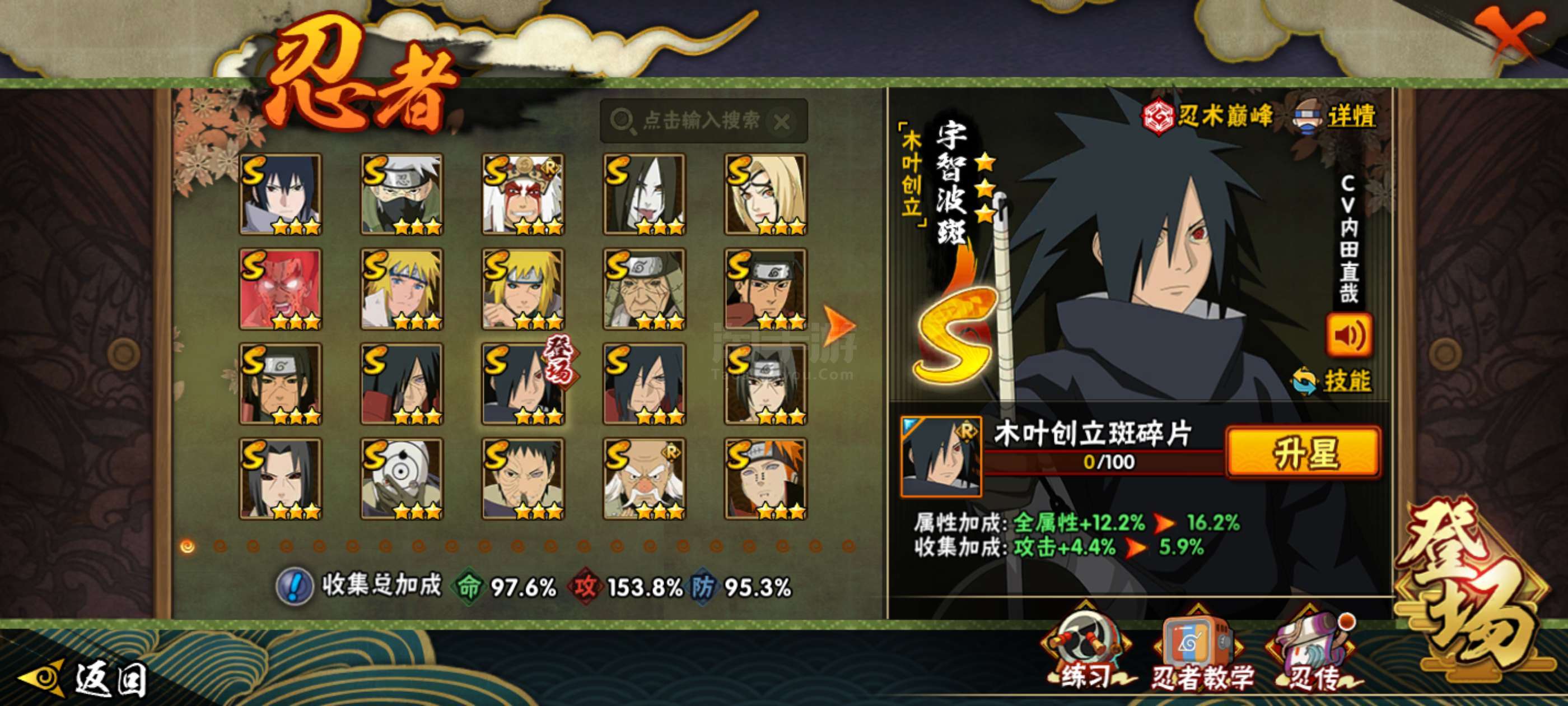 V15 1671万战力 45S忍-82A忍 有熊猫 金币1万 鬼灯幻月42片