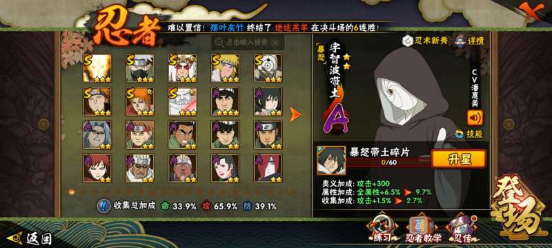 6尾,鼬,自来也A忍8个,黑绝,新春我爱罗,神农,等