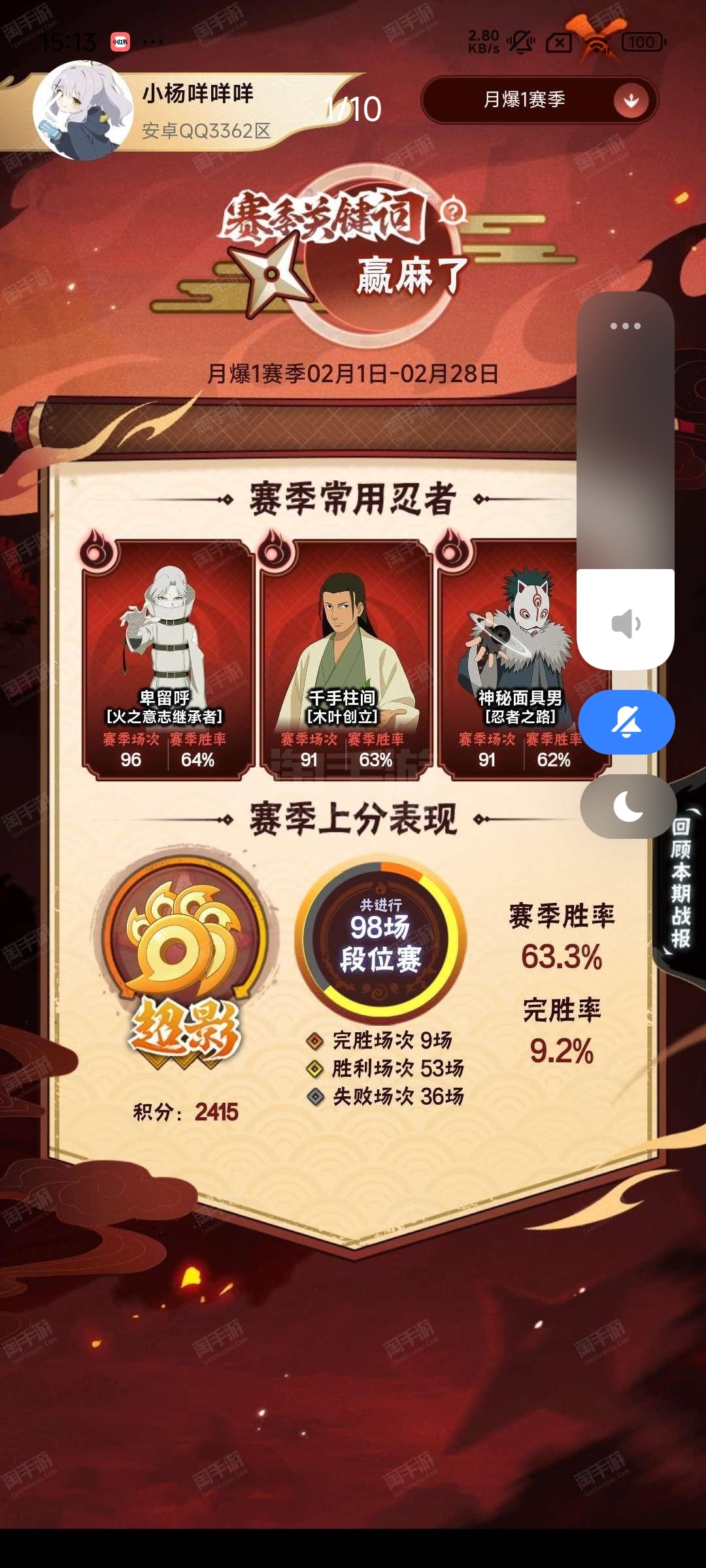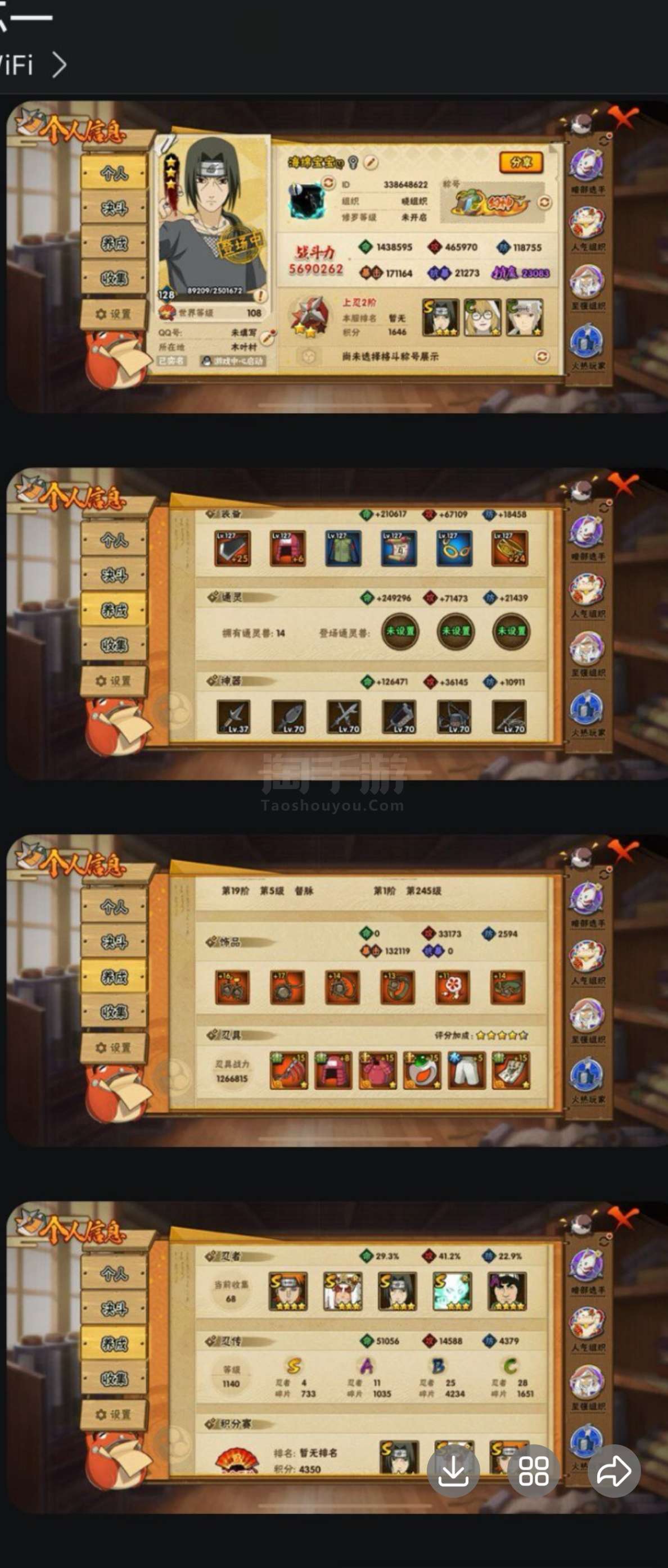 安卓QQ V13/1240万战力/总忍者264/35S/56A/白面具/忍战带土/红夜带