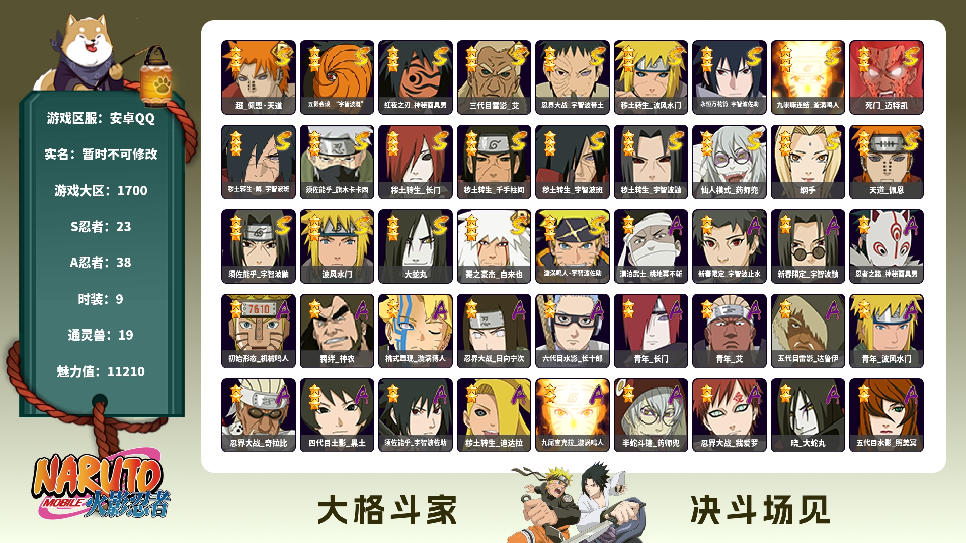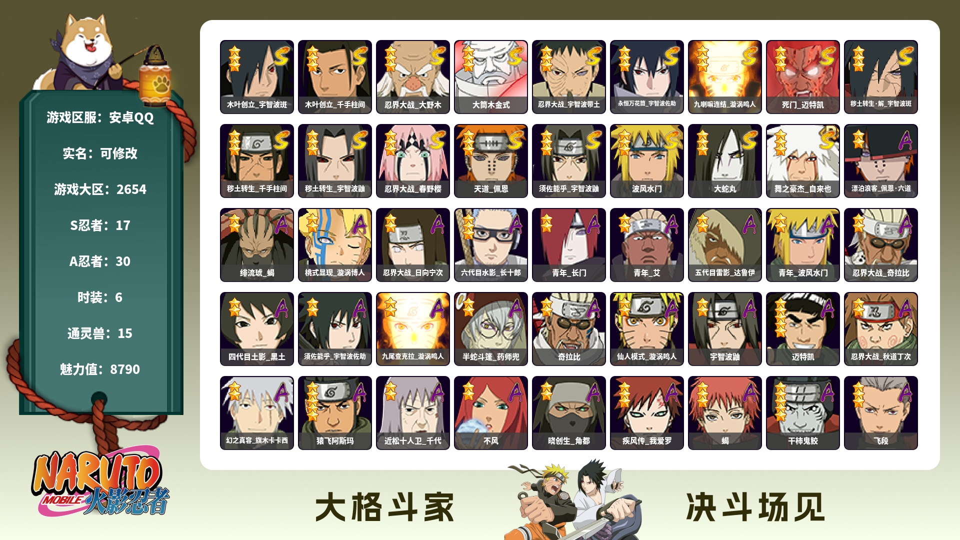 691w战力+五影斑+解斑+须佐卡卡西10S+面麻1个198