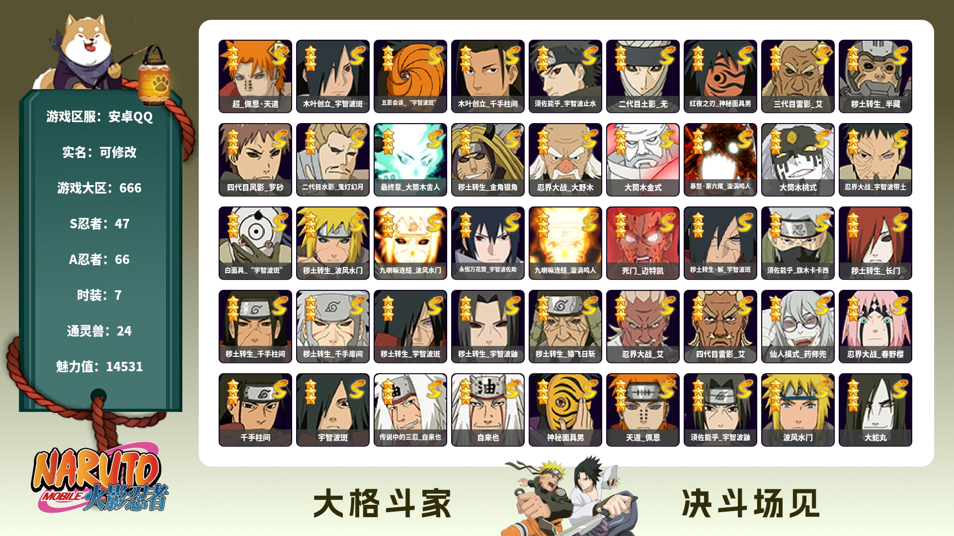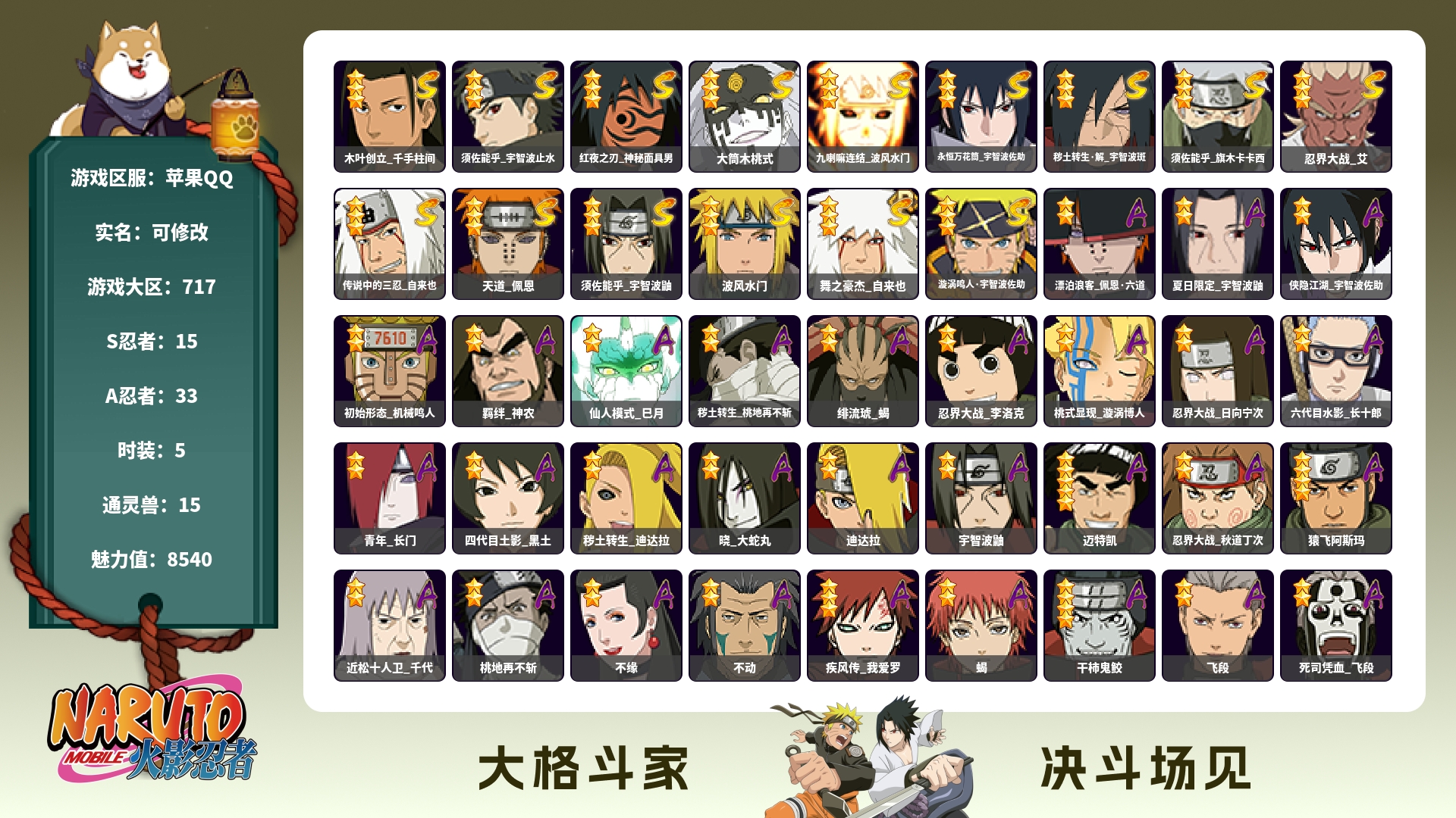 (可转苹果)744W战力破面五影斑解斑14S+盾狗33A战力