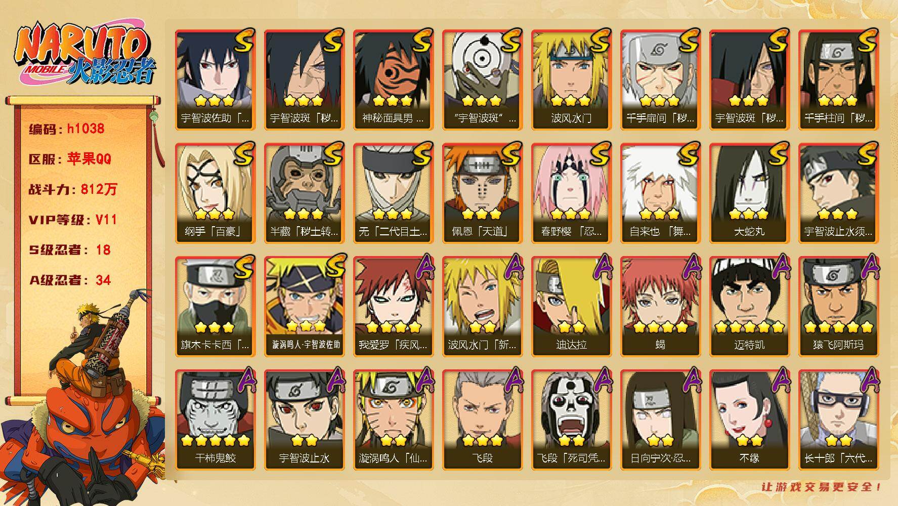 【HYX3664】V6/战力1123W/S忍17/A忍39/3星宇智波斑「秽土
