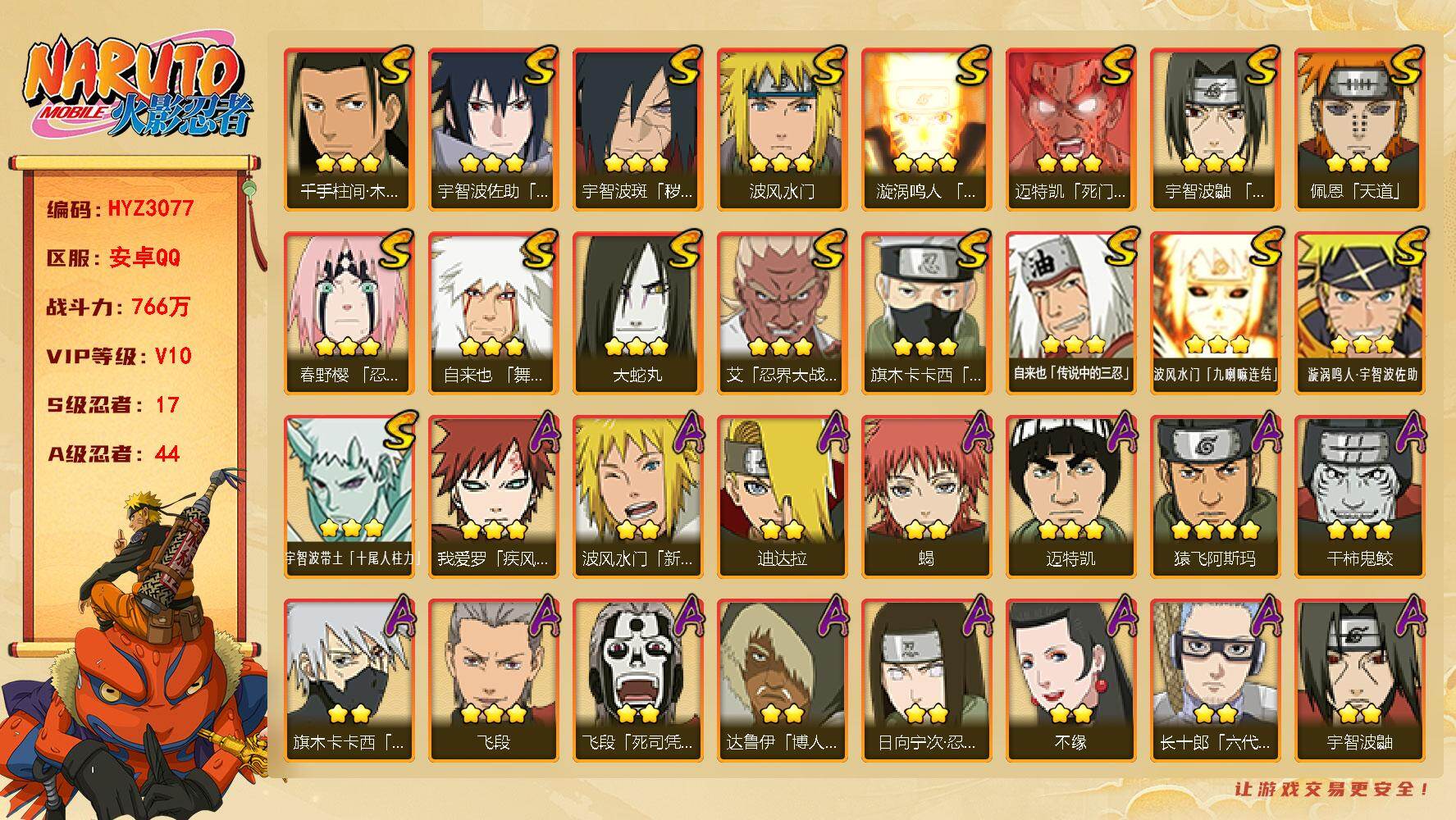 【HYZ3077】V10/战力766W/S忍17/A忍44/2星波风水门「新春