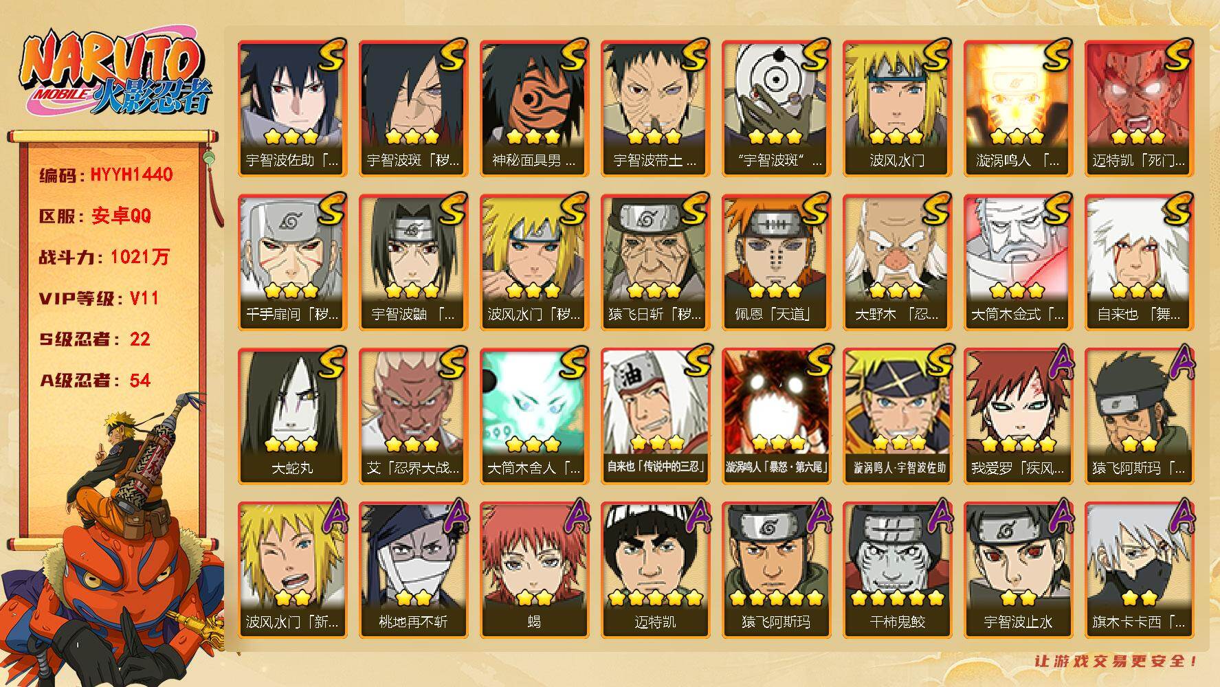 【HYYH1440】V11/战力1021W/S忍22/A忍54/2星波风水门「