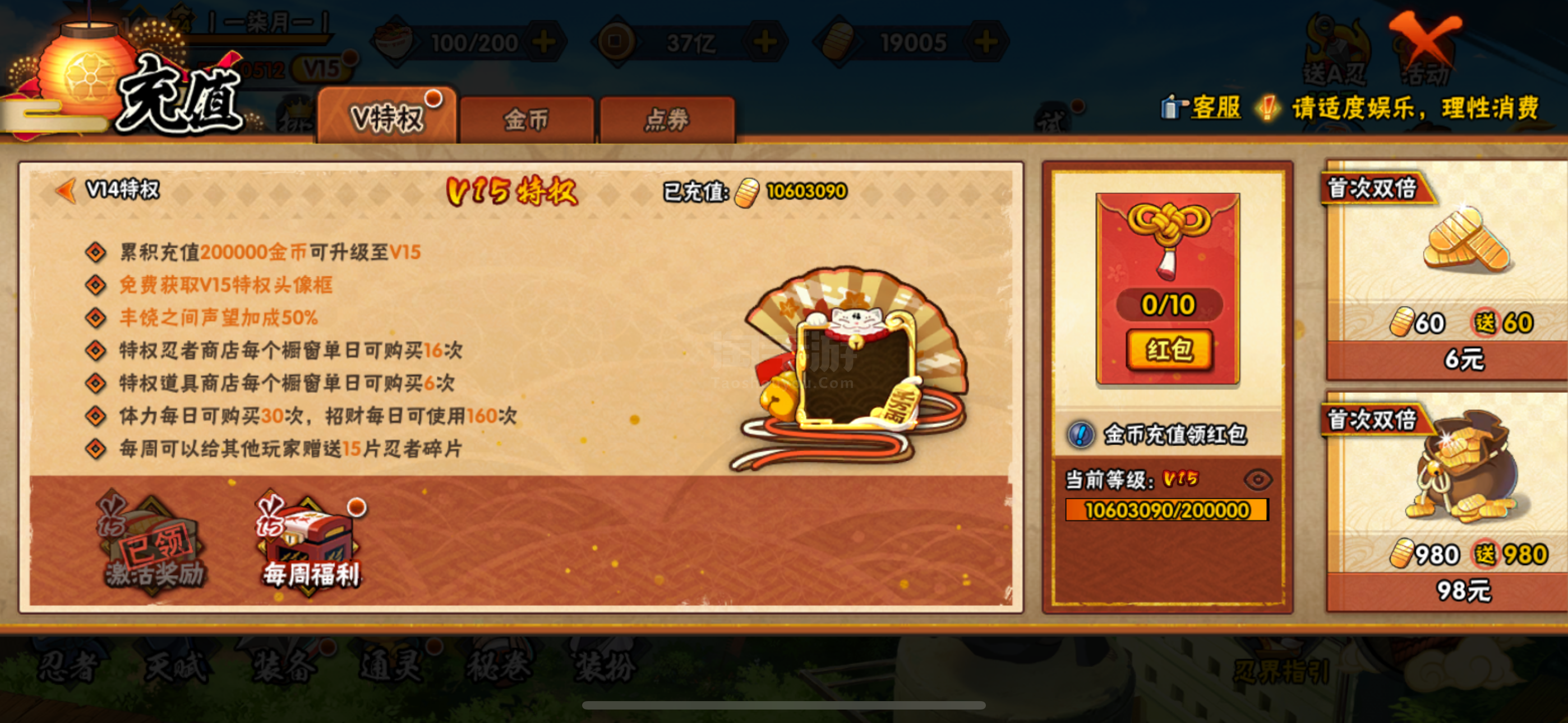 苹果QQ 战力740万,S忍14,VIP10级。A忍28