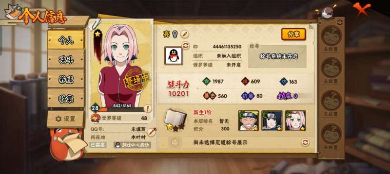 火影忍者【安卓QQ】新区开荒号有2.8w金币 刚开服半月