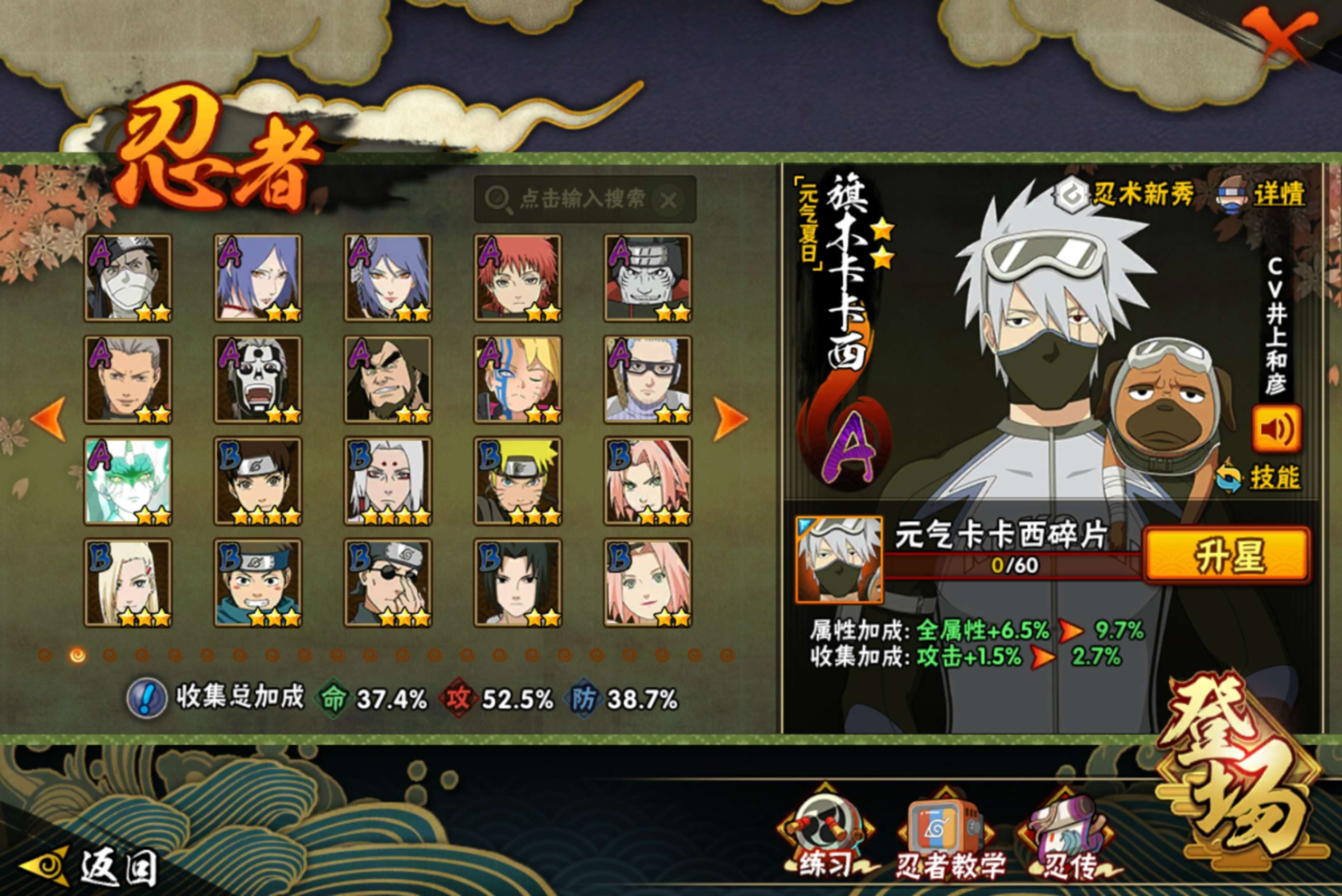 角色等级139 金币438 战斗力361 S忍9 A忍27 5星S忍者7 5 段位中忍
