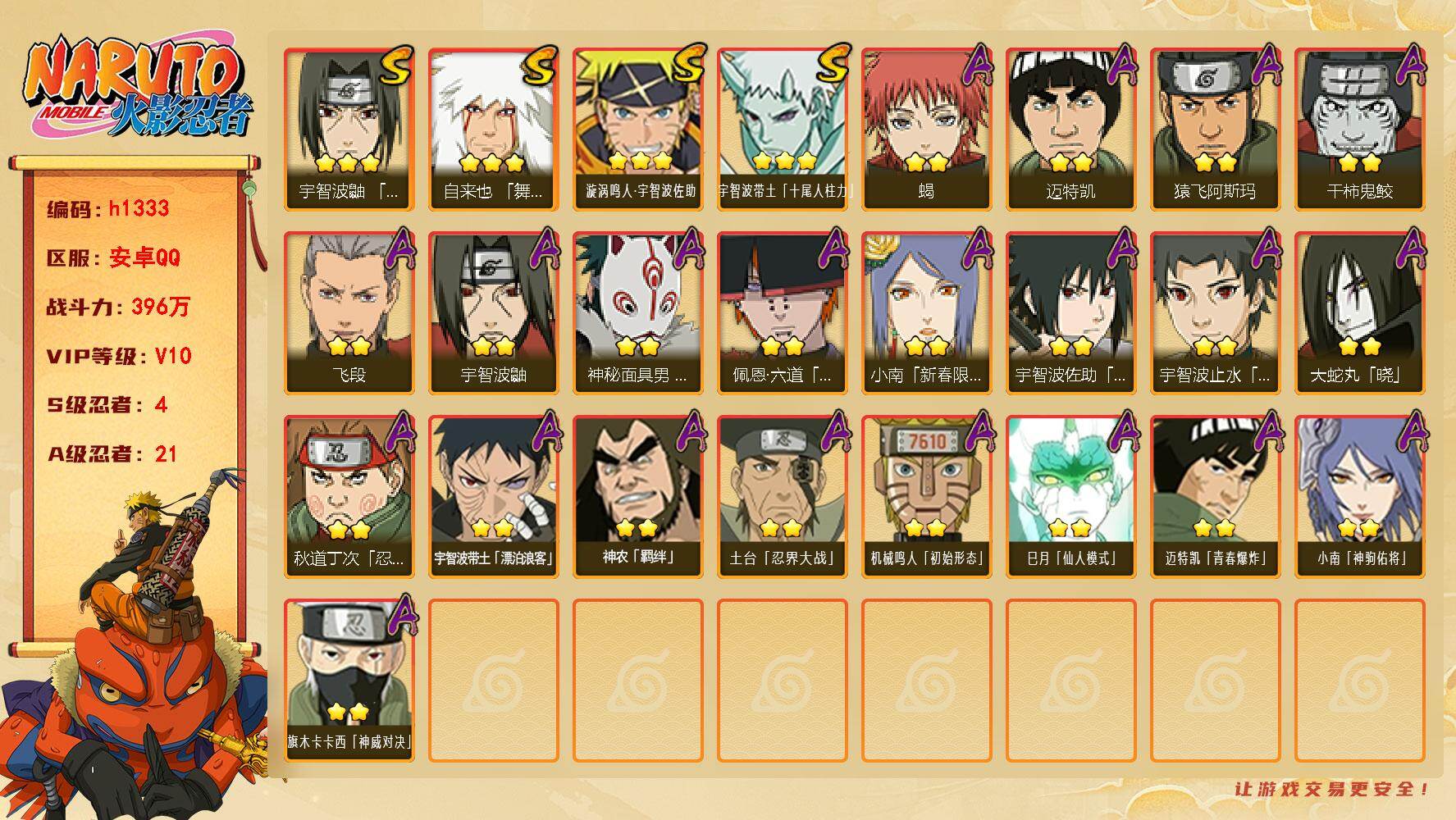 v4 808万战力 8S 21A 4300金币 zp3576【S级忍者】:宇