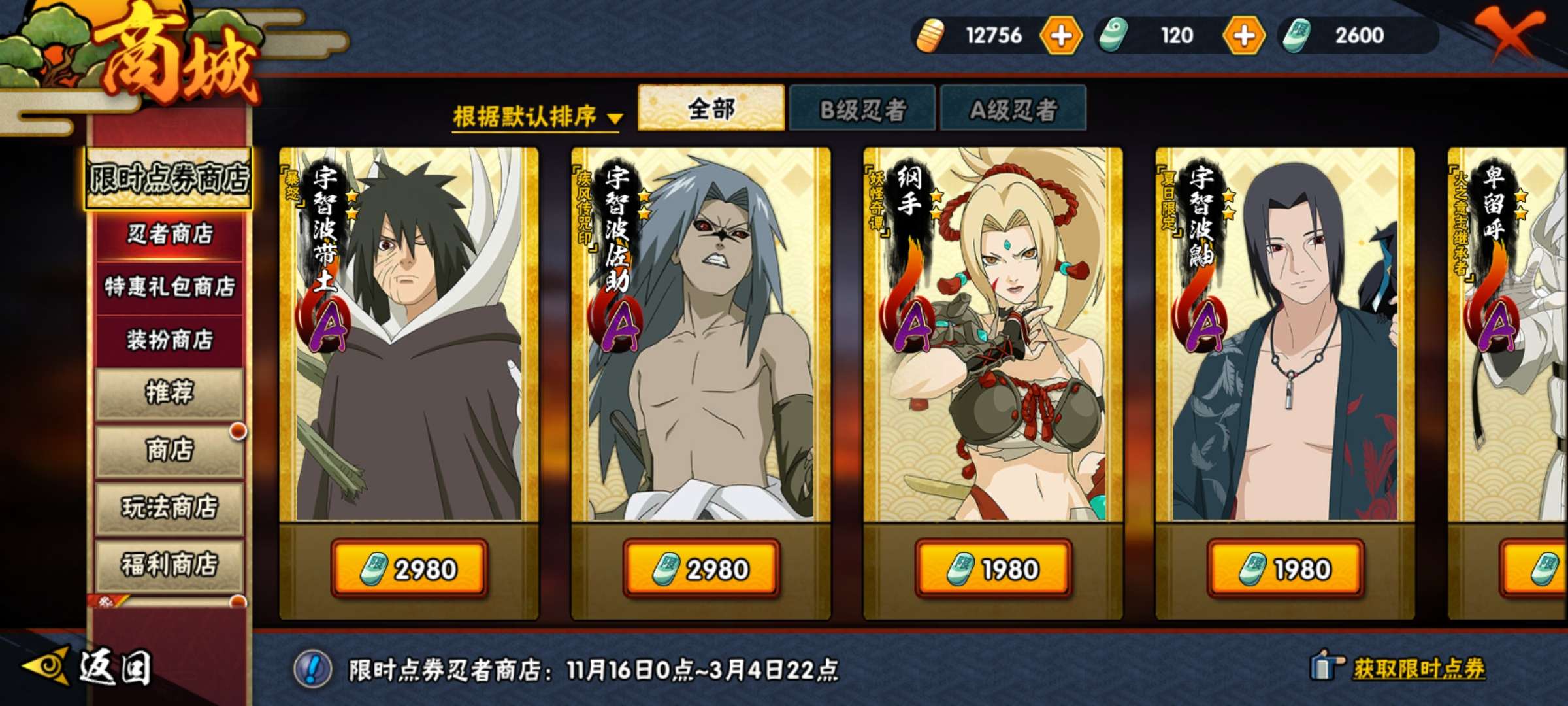 金币和高招卷 忍者自己看图 限时点券没花