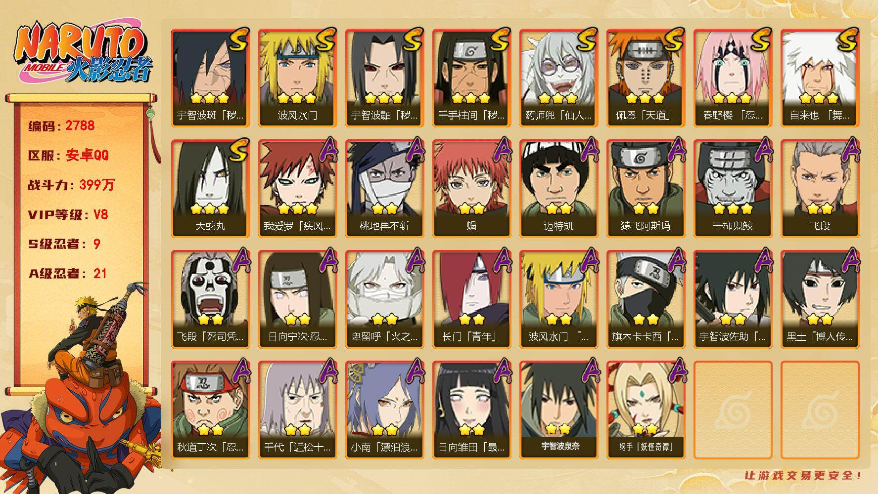 (可免费转苹果)v8 9S 21A 399w战力 热门A忍:最终章雏田 YY2