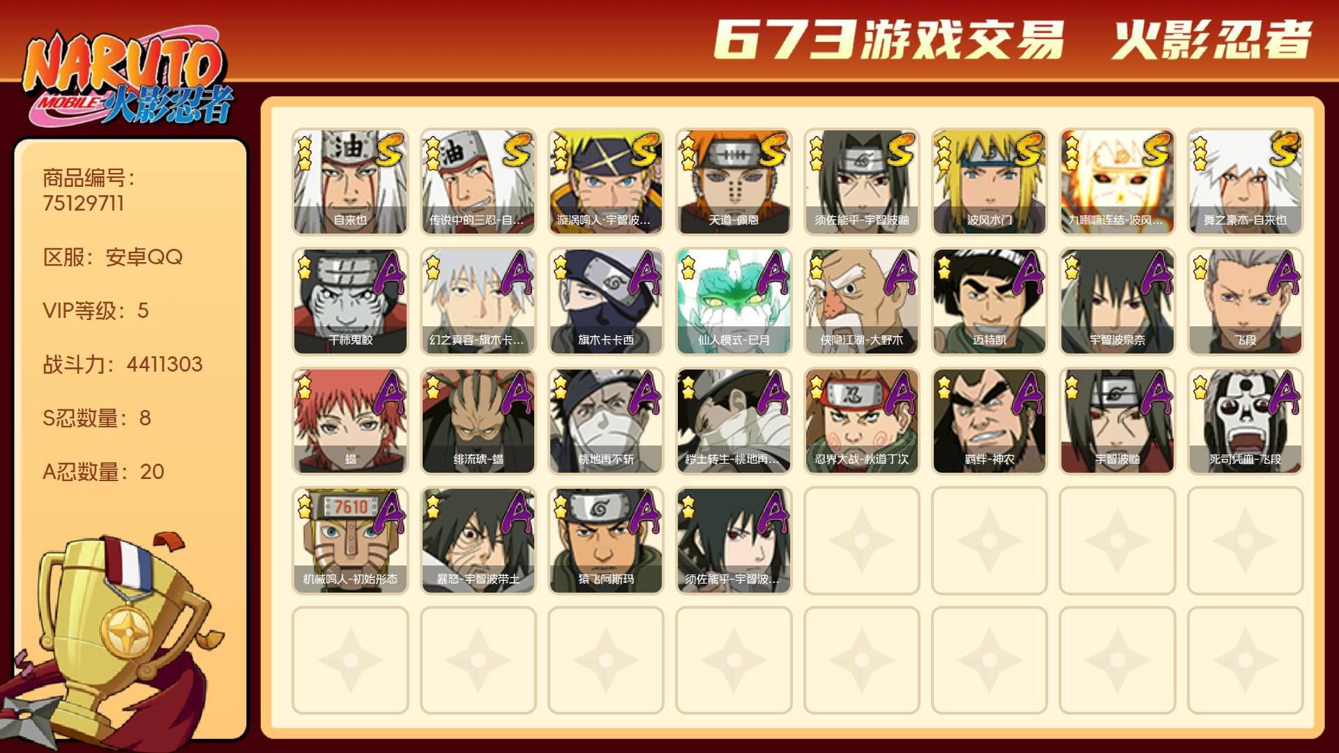 V9/战力429W/S忍10/A忍21/通灵兽15