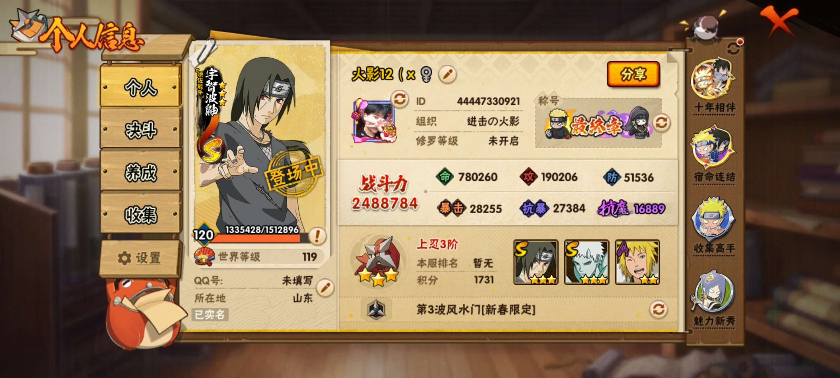 v4 808万战力 8S 21A 4300金币 zp3576【S级忍者】:宇