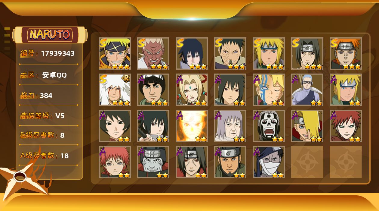 【可二次 S忍者6 A忍者18 通灵17】【安卓Q-4411区-131级-V5-