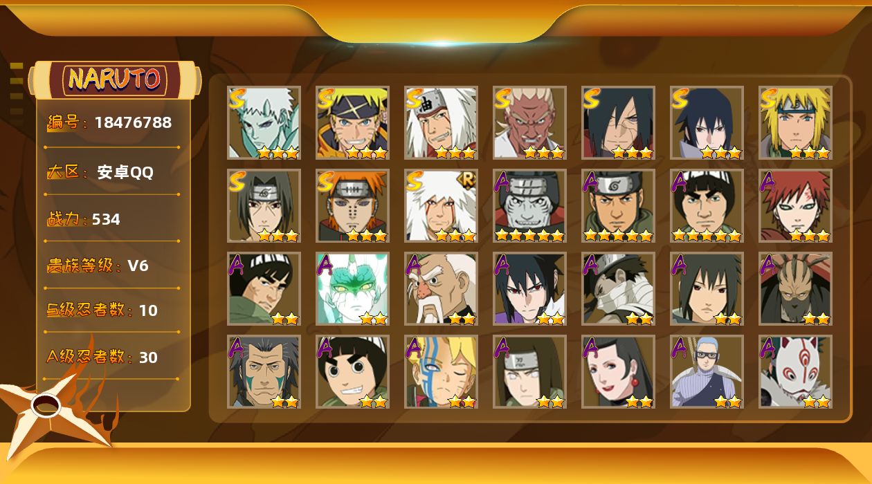 安卓QQ-成品火影号-800万战力-忍发帖基础班-S忍者数