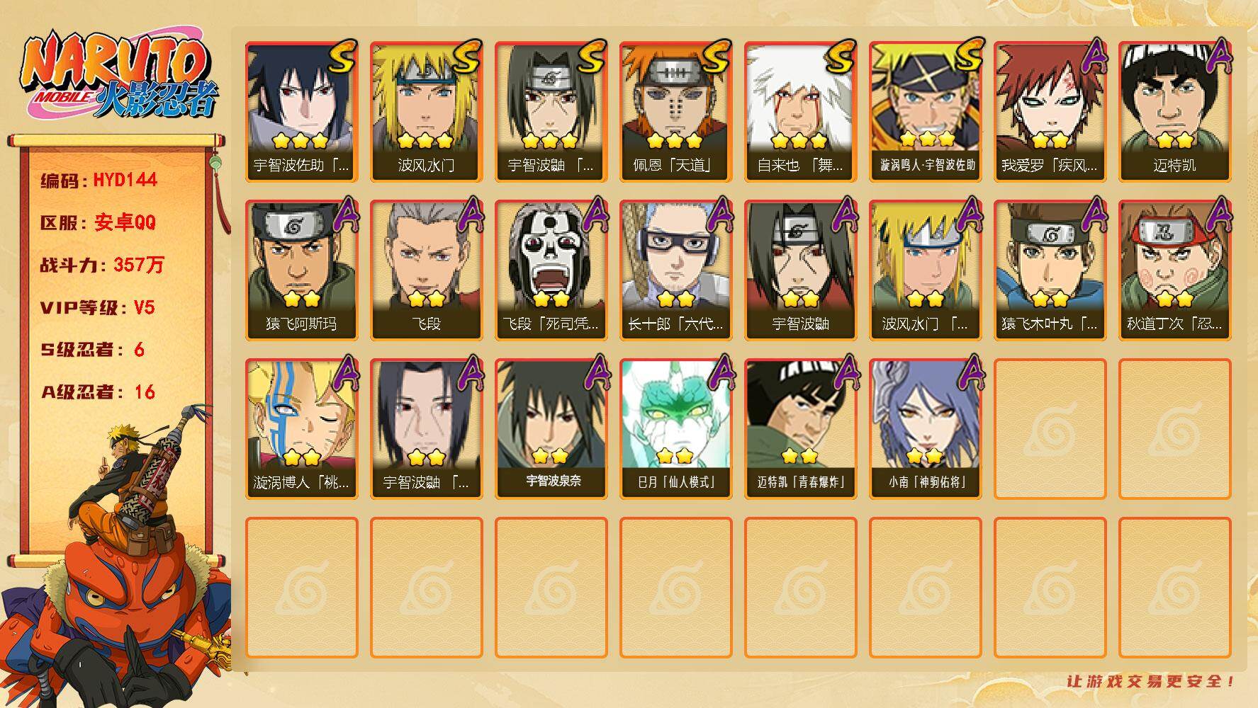 安卓QQ-成品火影号-800万战力-忍发帖基础班-S忍者数