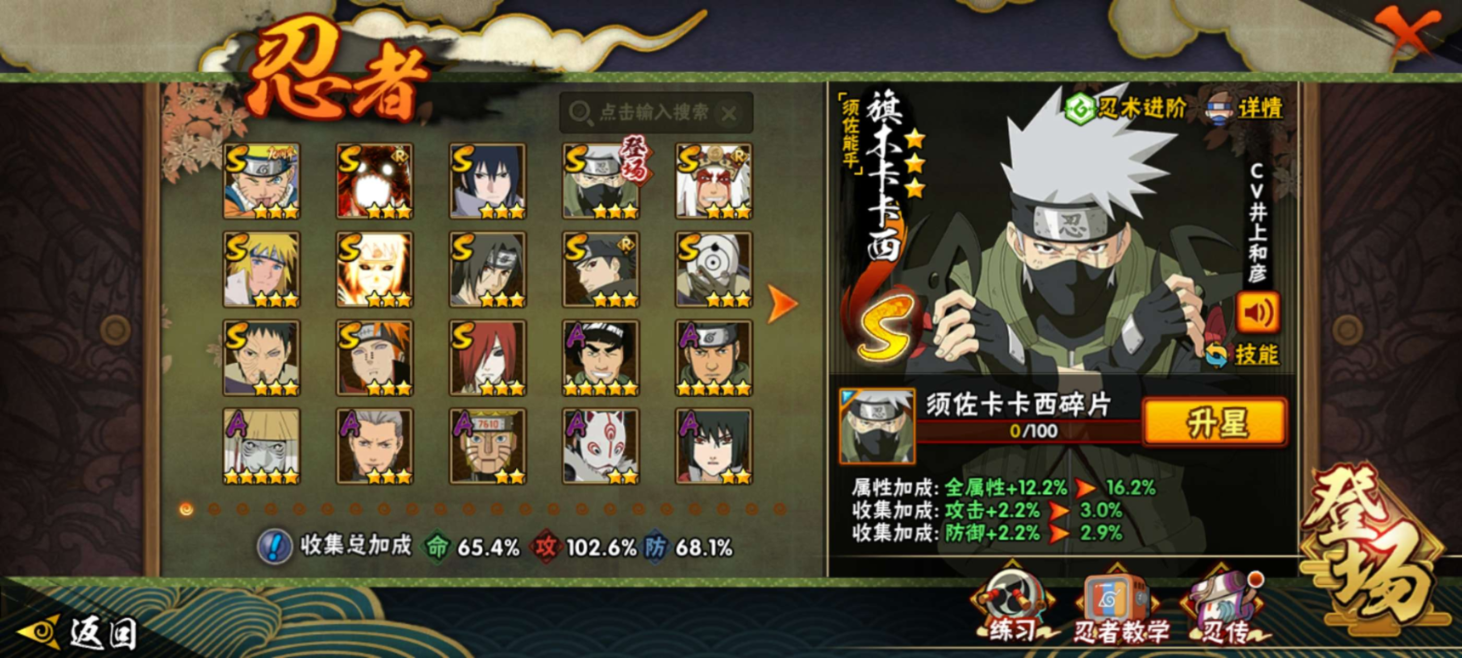 3S级忍者数-8A级忍者数【S级忍者】:自来也「舞之豪杰」(3星),漩涡鸣人