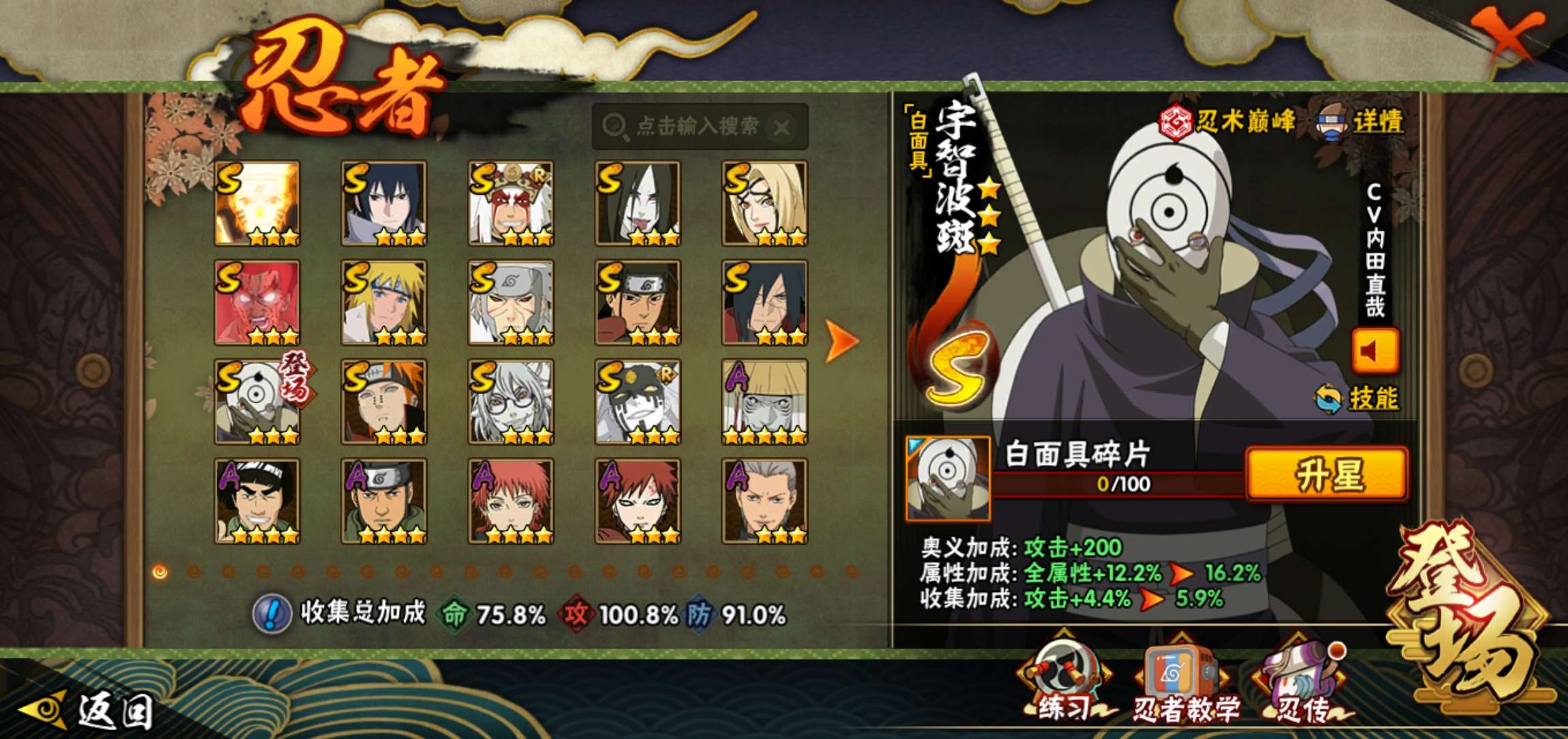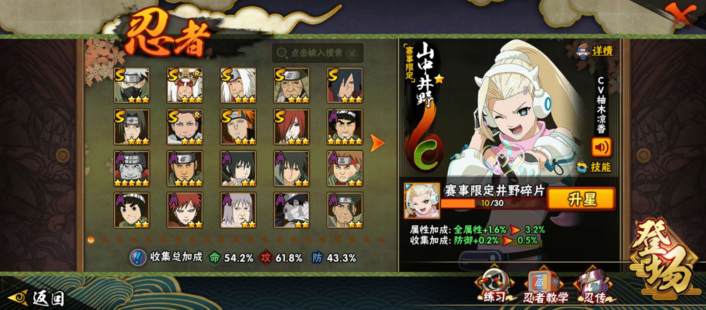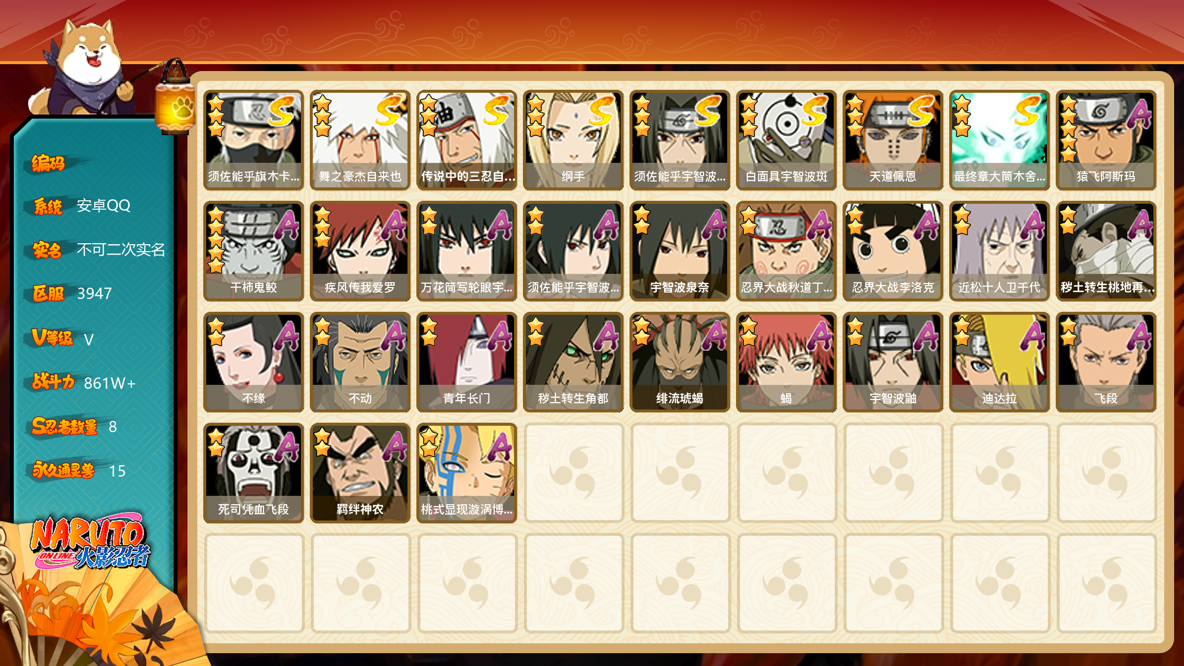 火影忍者【安卓QQ】战斗力:861W+;段位:下忍3阶