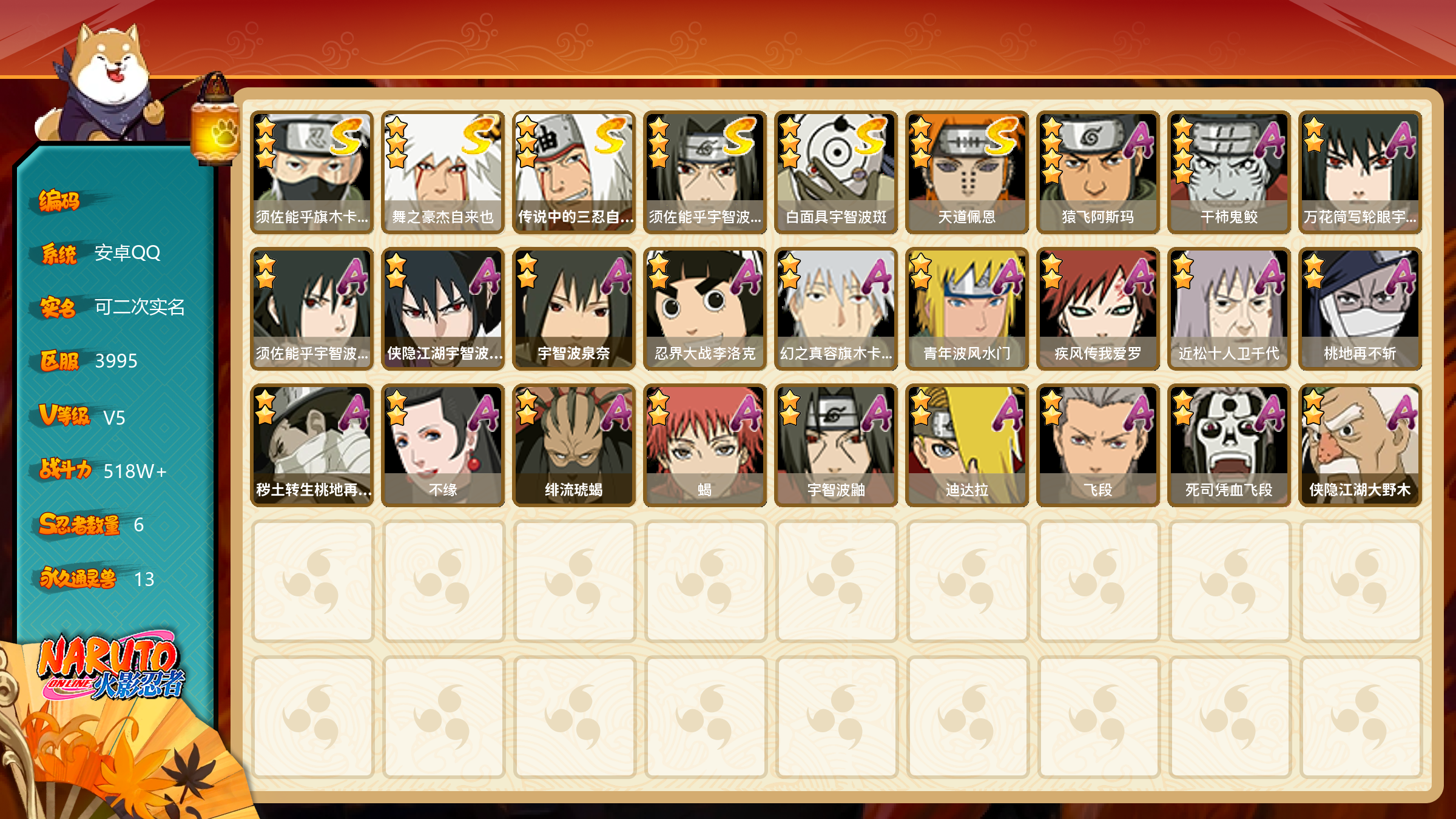 火影忍者【安卓QQ】战斗力:518W+;段位:中忍3阶;本服排名:521