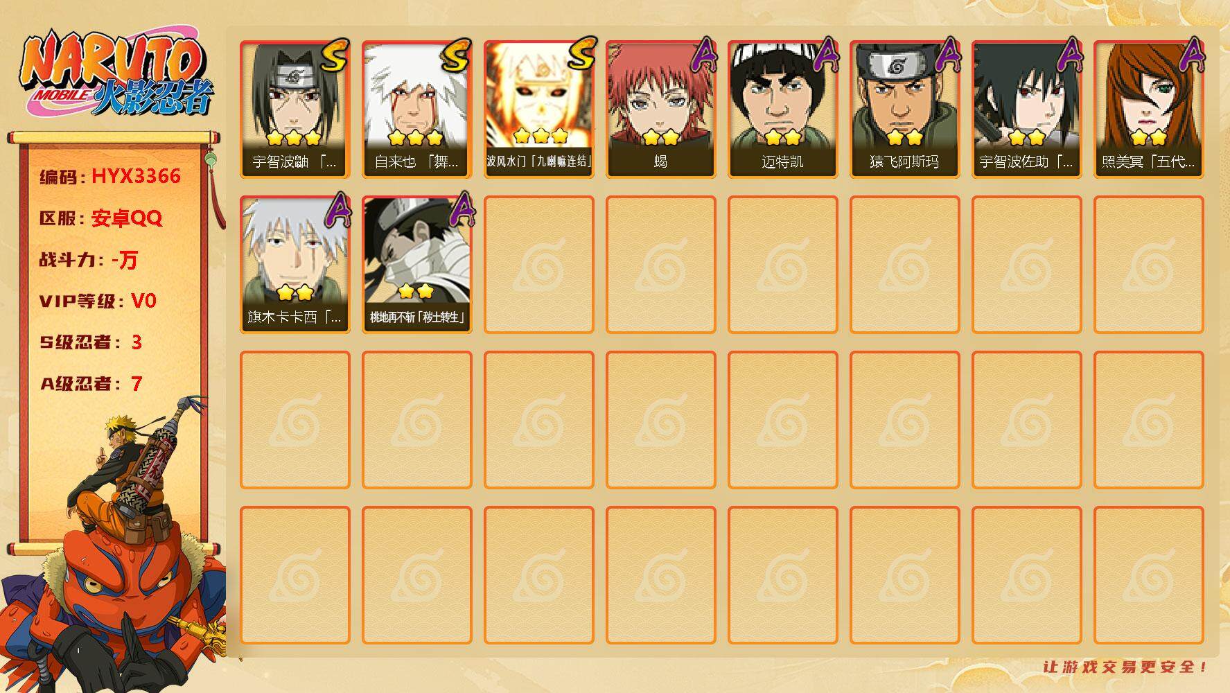 火影忍者【安卓QQ】上班没时间玩了,诚心出