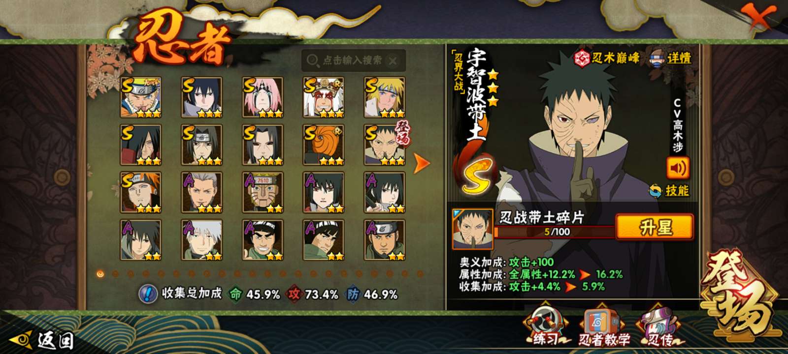 9S级忍者数-29A级忍者数【S级忍者】:宇智波斑「秽土转生·解」(3星)