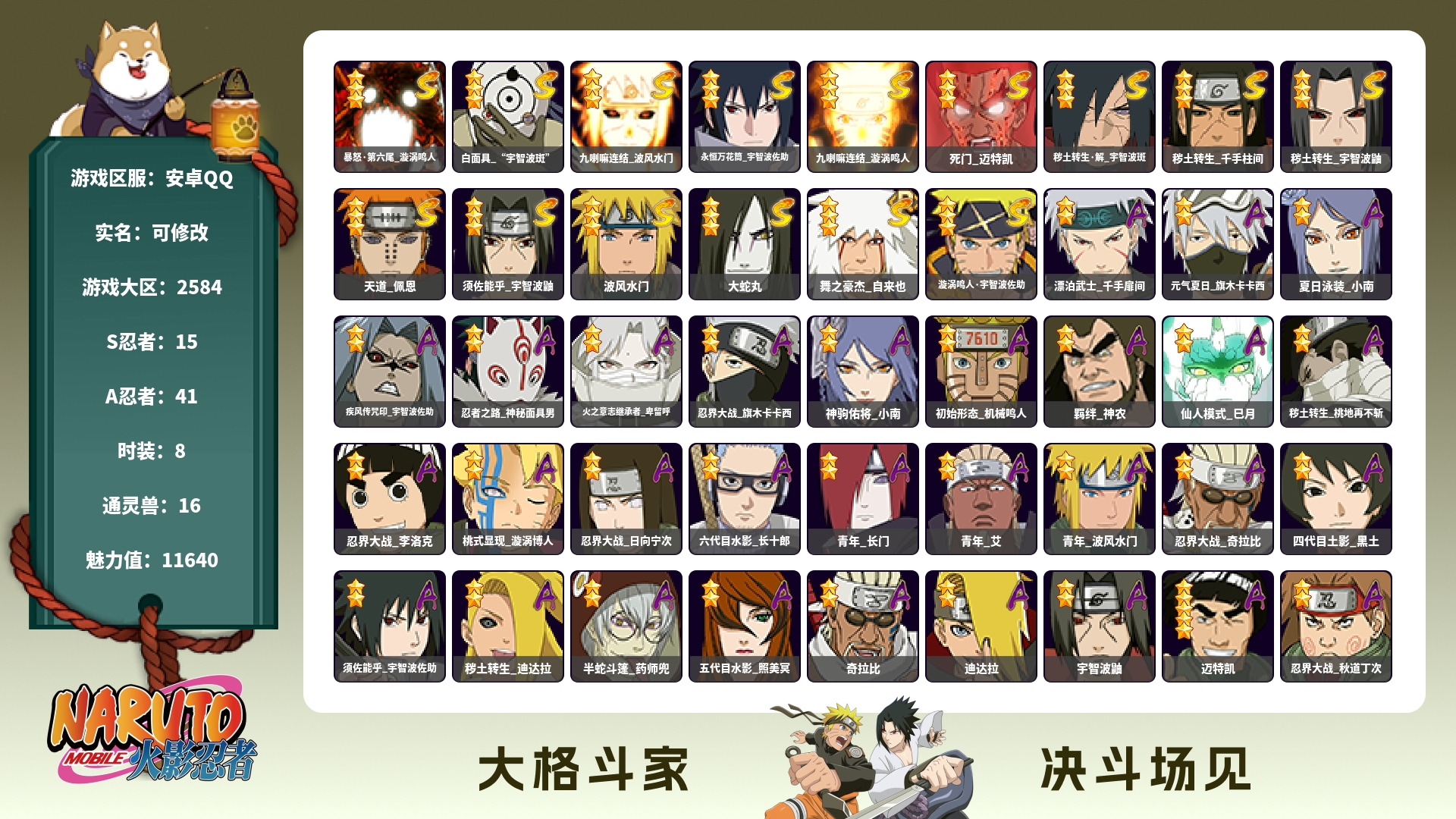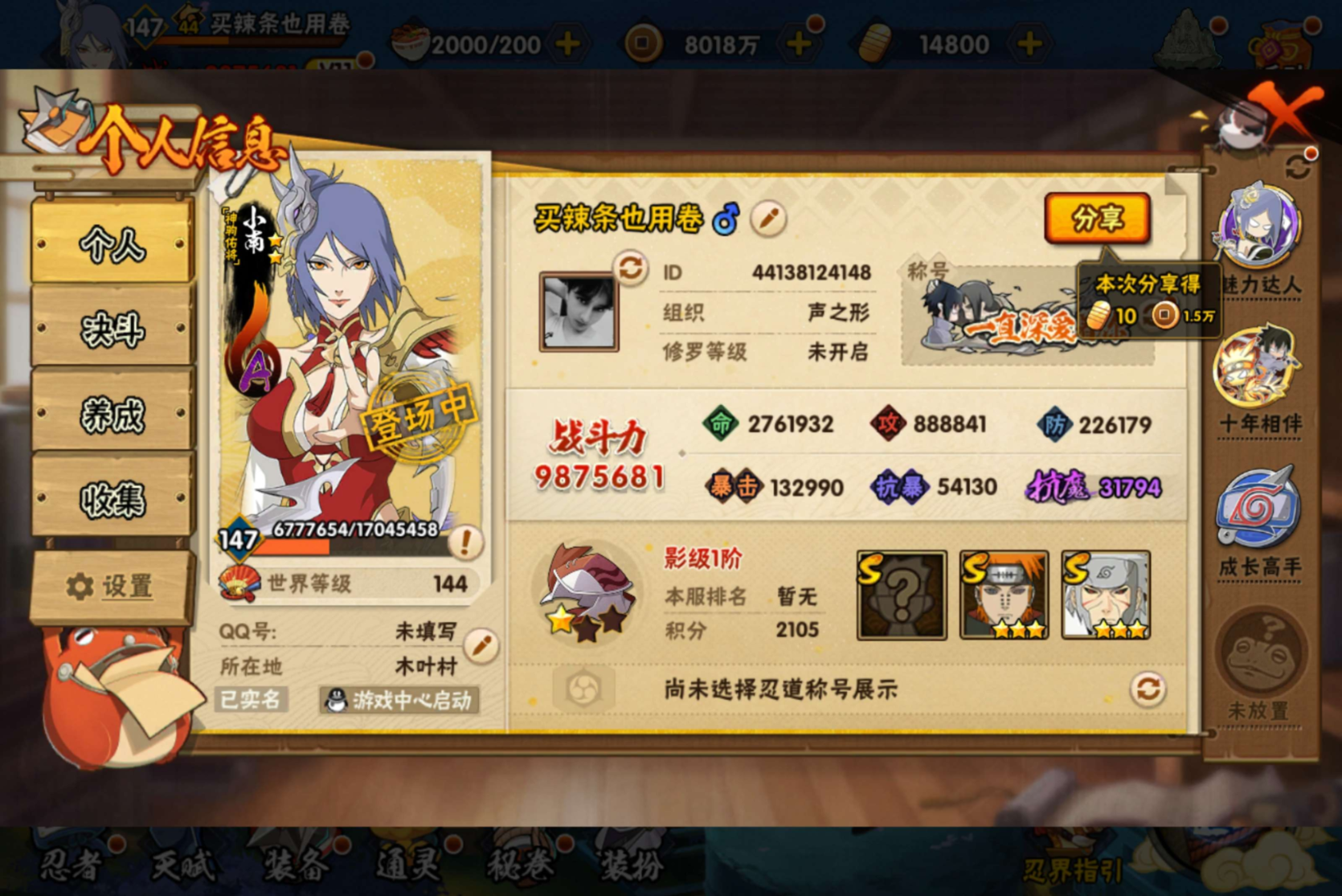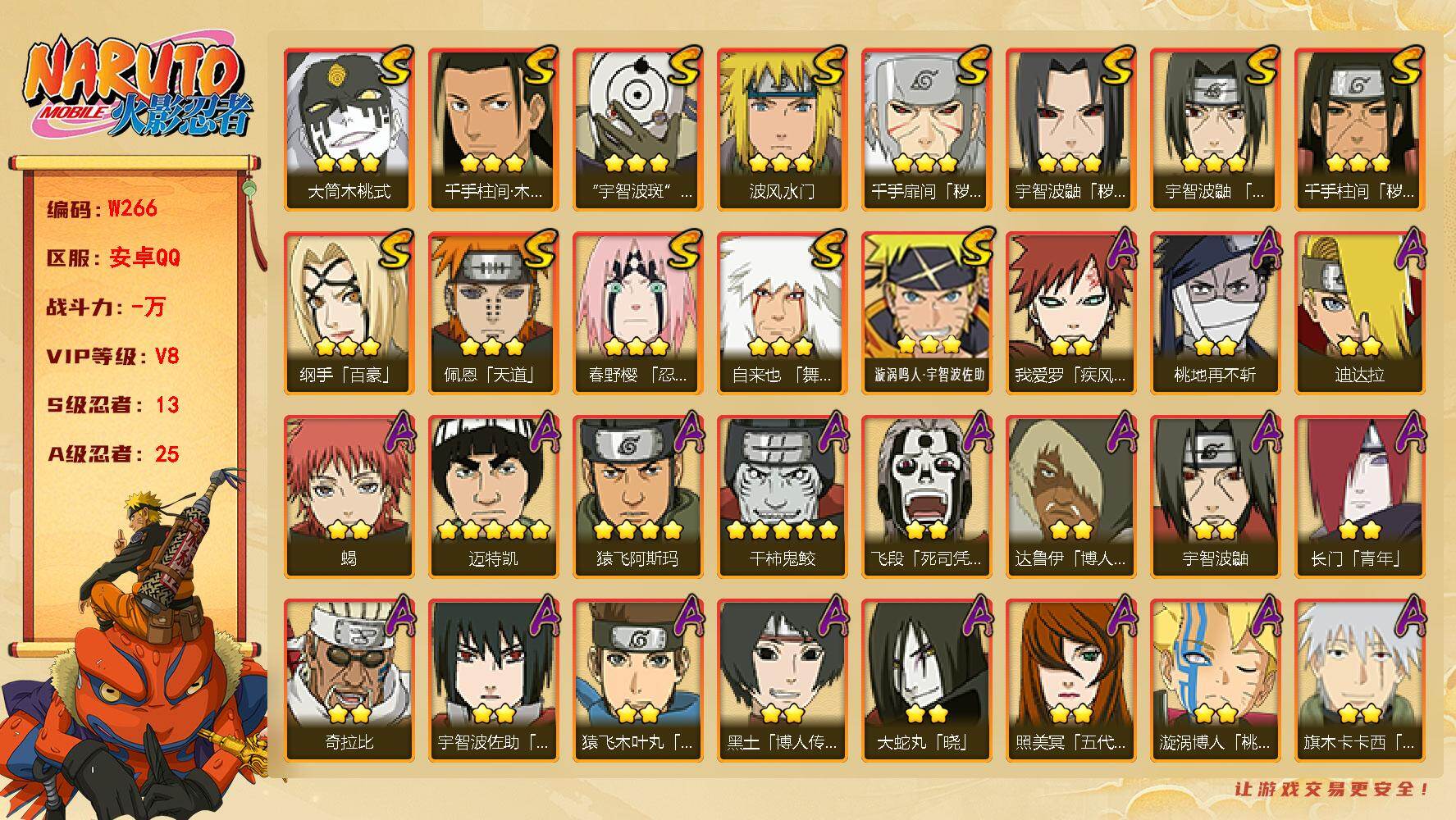 火影忍者21s37a账号 超哥熊猫8个忍法帖s 3个198忍者