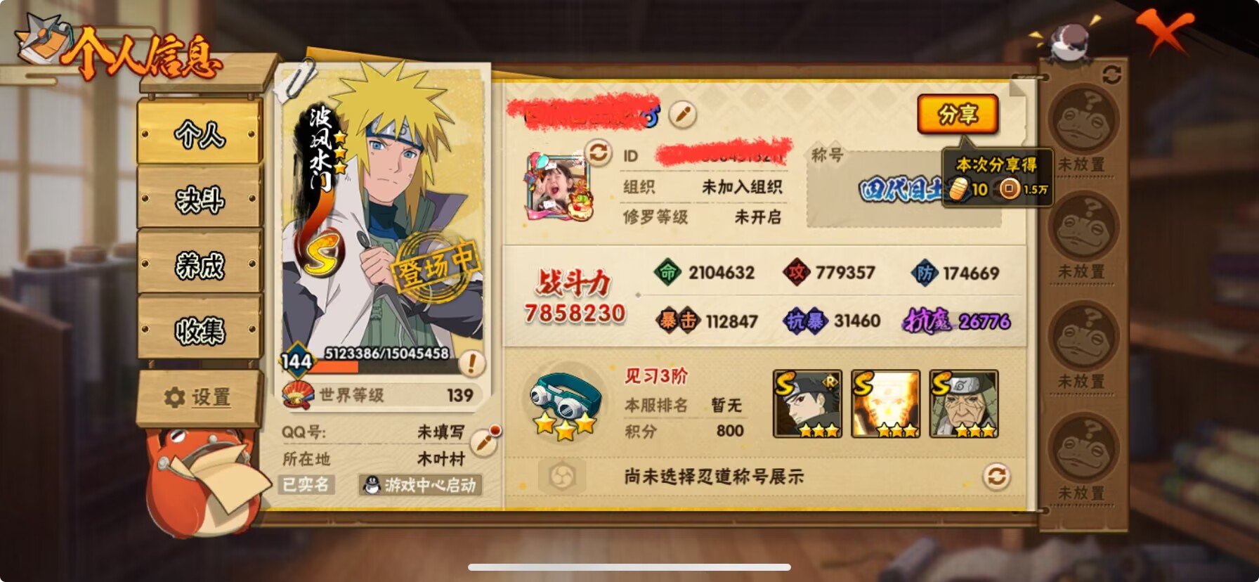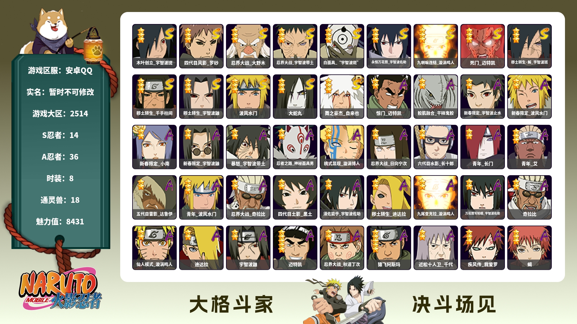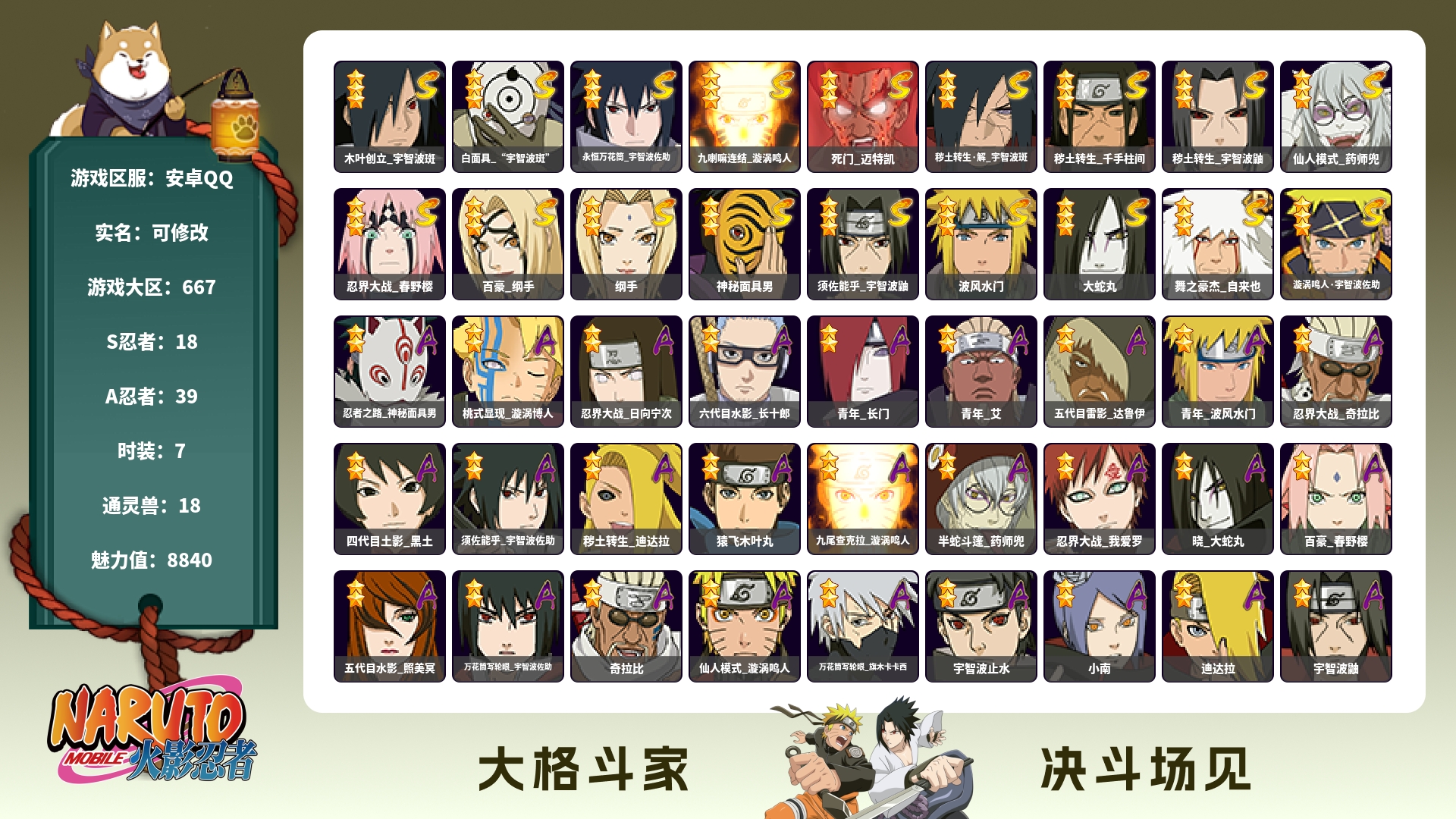 火影忍者21s37a账号 超哥熊猫8个忍法帖s 3个198忍者
