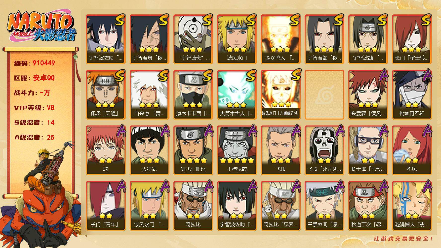 安卓QQ-v9-中忍-742w战力捡漏号-到手即可畅玩-漩