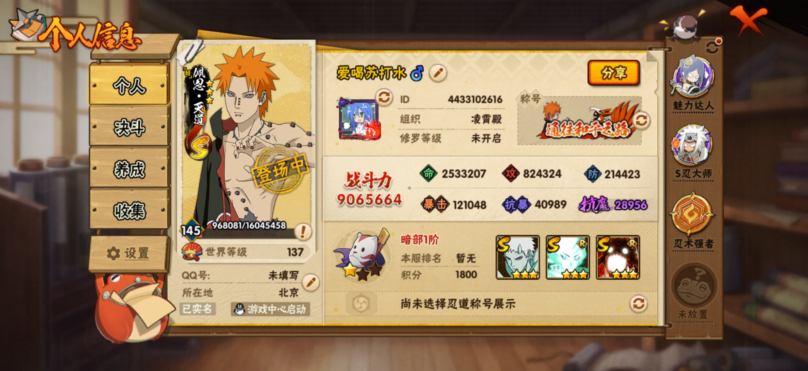 14S级忍者数-25A级忍者数【S级忍者】:长门「秽土转生」(3星)