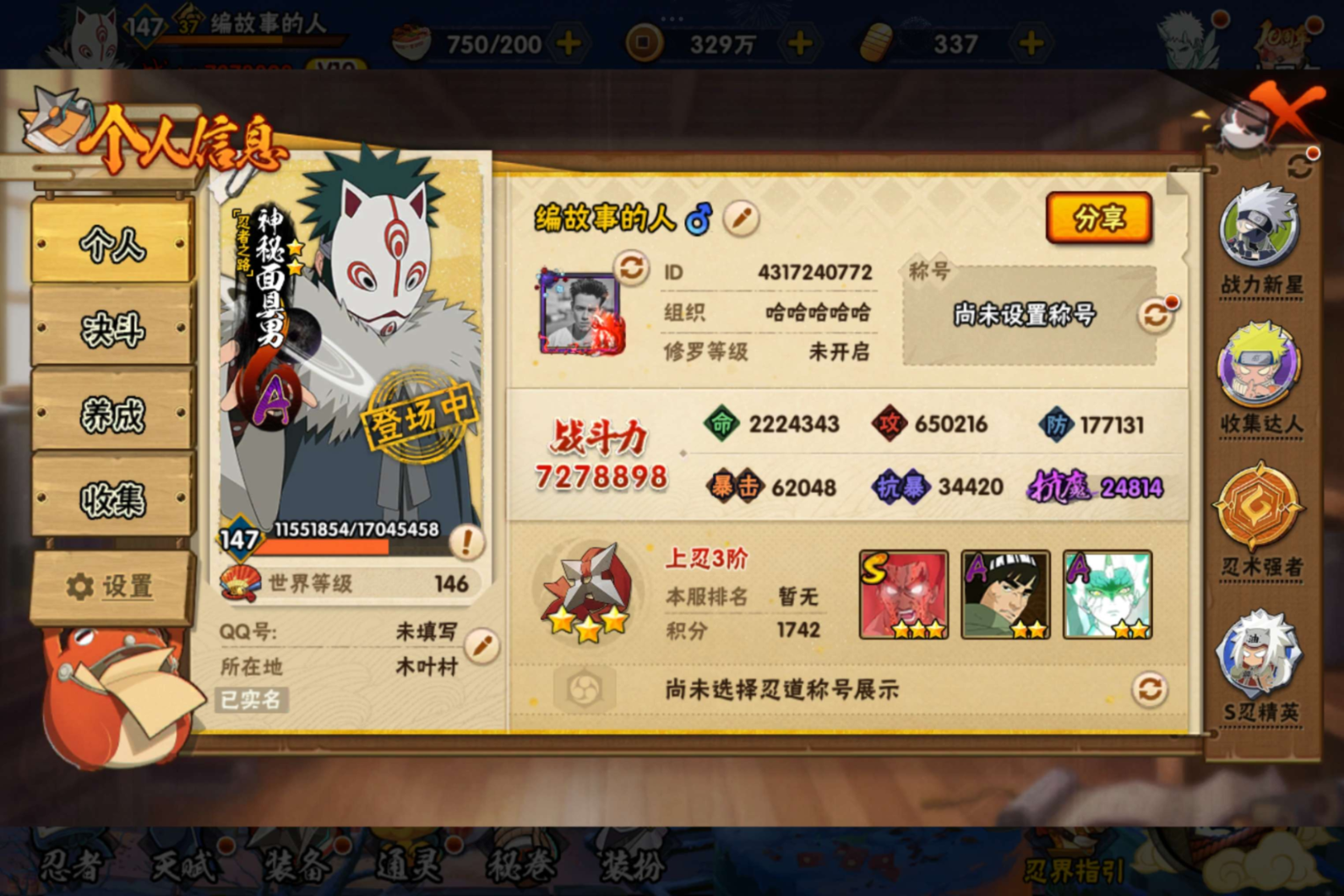 安卓QQ-可二次-11个198忍者-S忍者数:15-A忍者