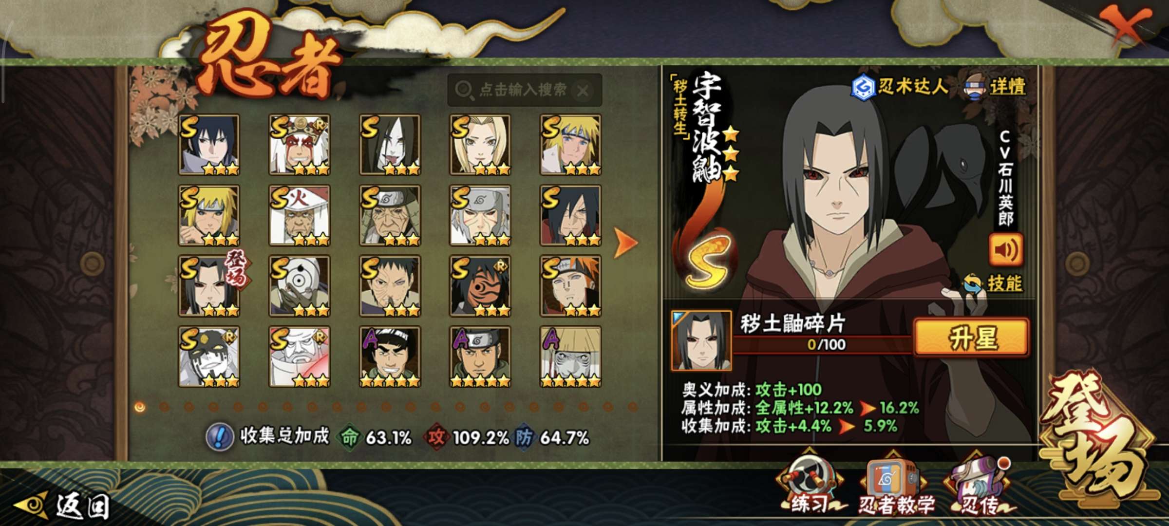 v13,997w战力,20S级忍者数-33A级忍者数,传说自来也73片,红夜面