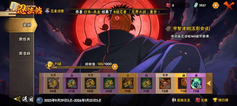 角色等级149 金币110万 战斗力1238万 S忍21 A忍39 9 段位上忍
