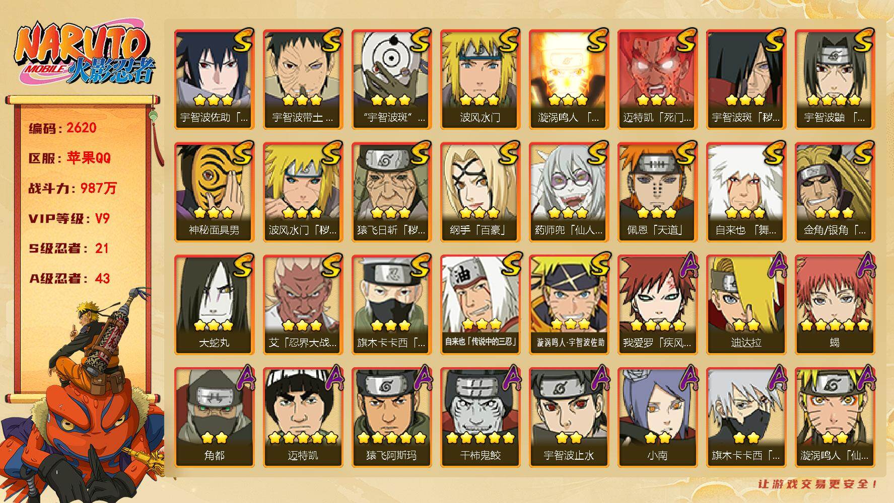 苹果QQ🔥总计600抽 3S+10万金🔥豪杰自来也s+水门s+佩恩s+金币10W+20高招🔥