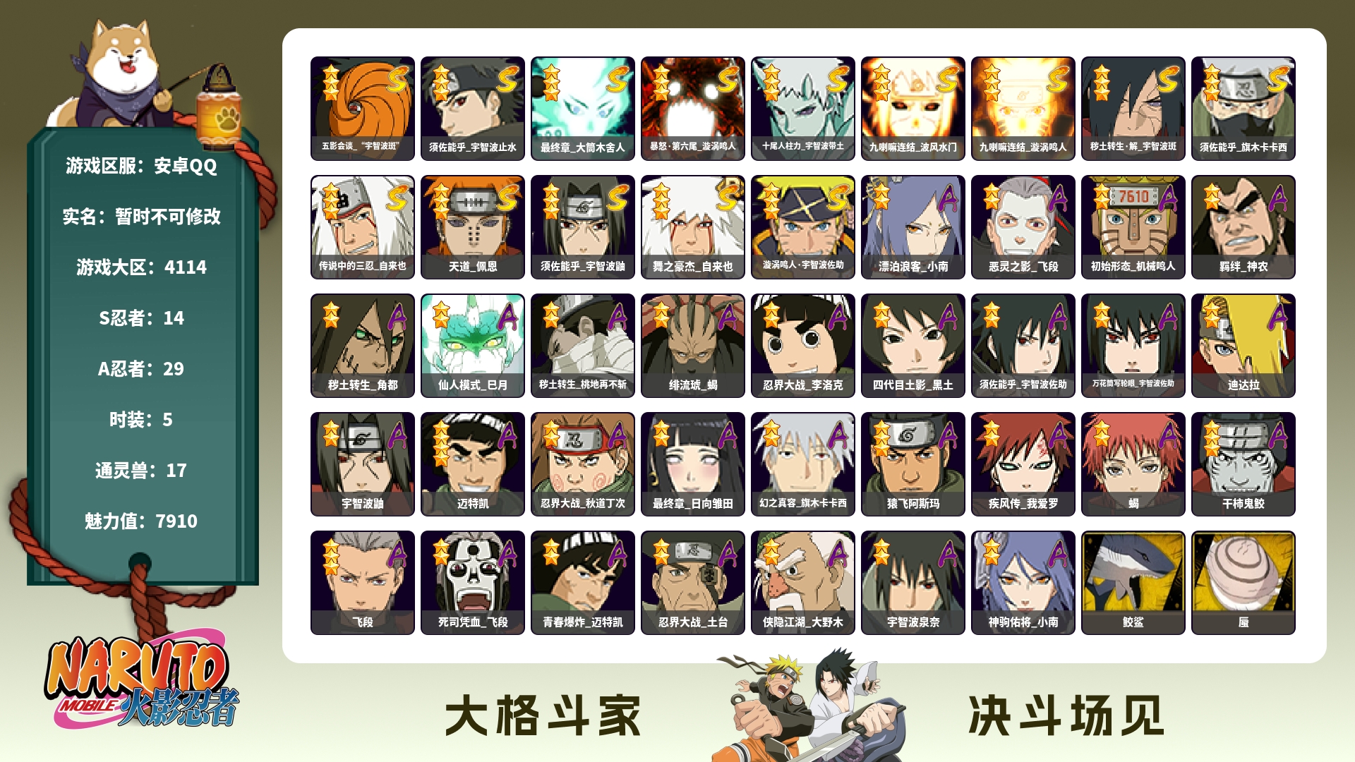 S忍者数:8- A忍者数:29【S级忍者】旗木卡卡西「须佐能乎」(3星),宇智