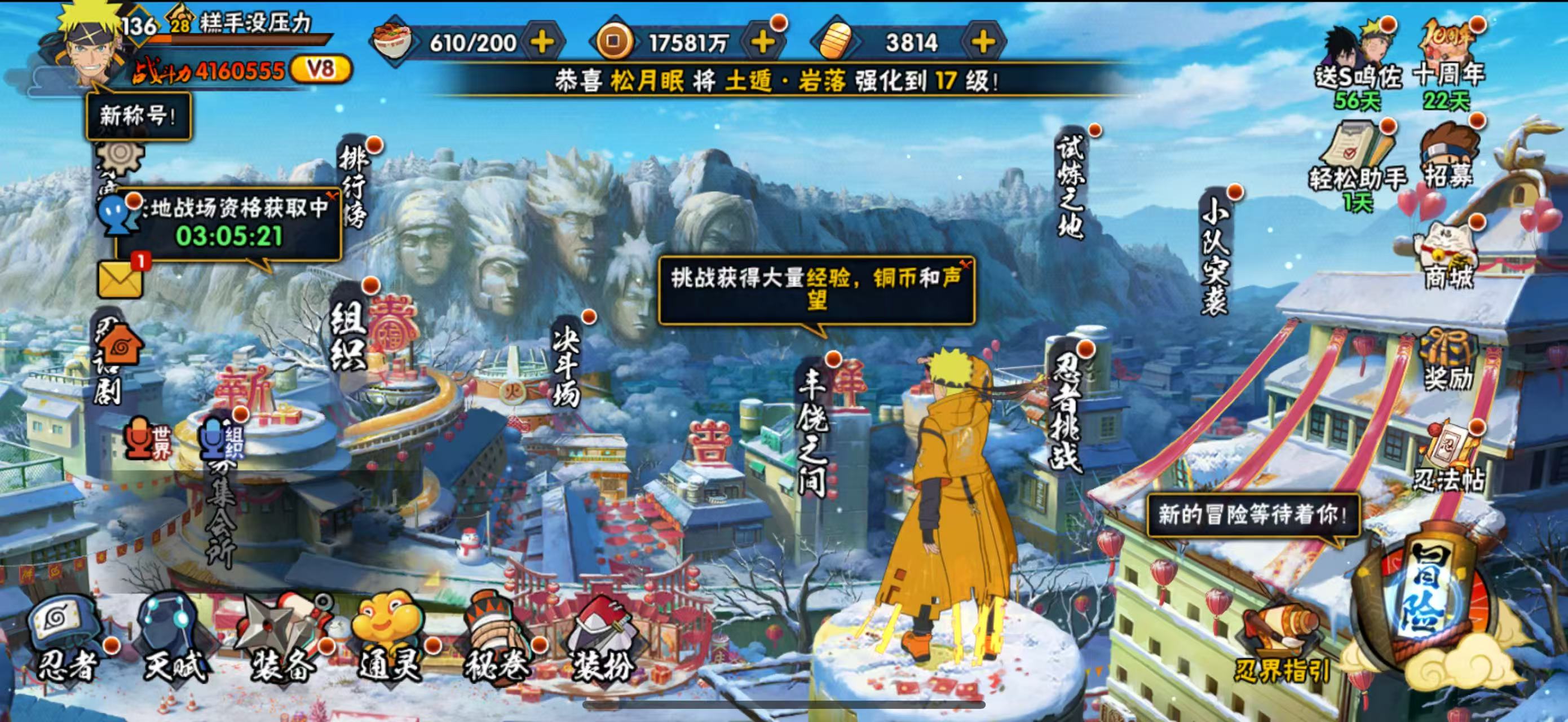 金币6000 战斗力700 S忍23 A忍45 5星S忍者3 13 段位上忍