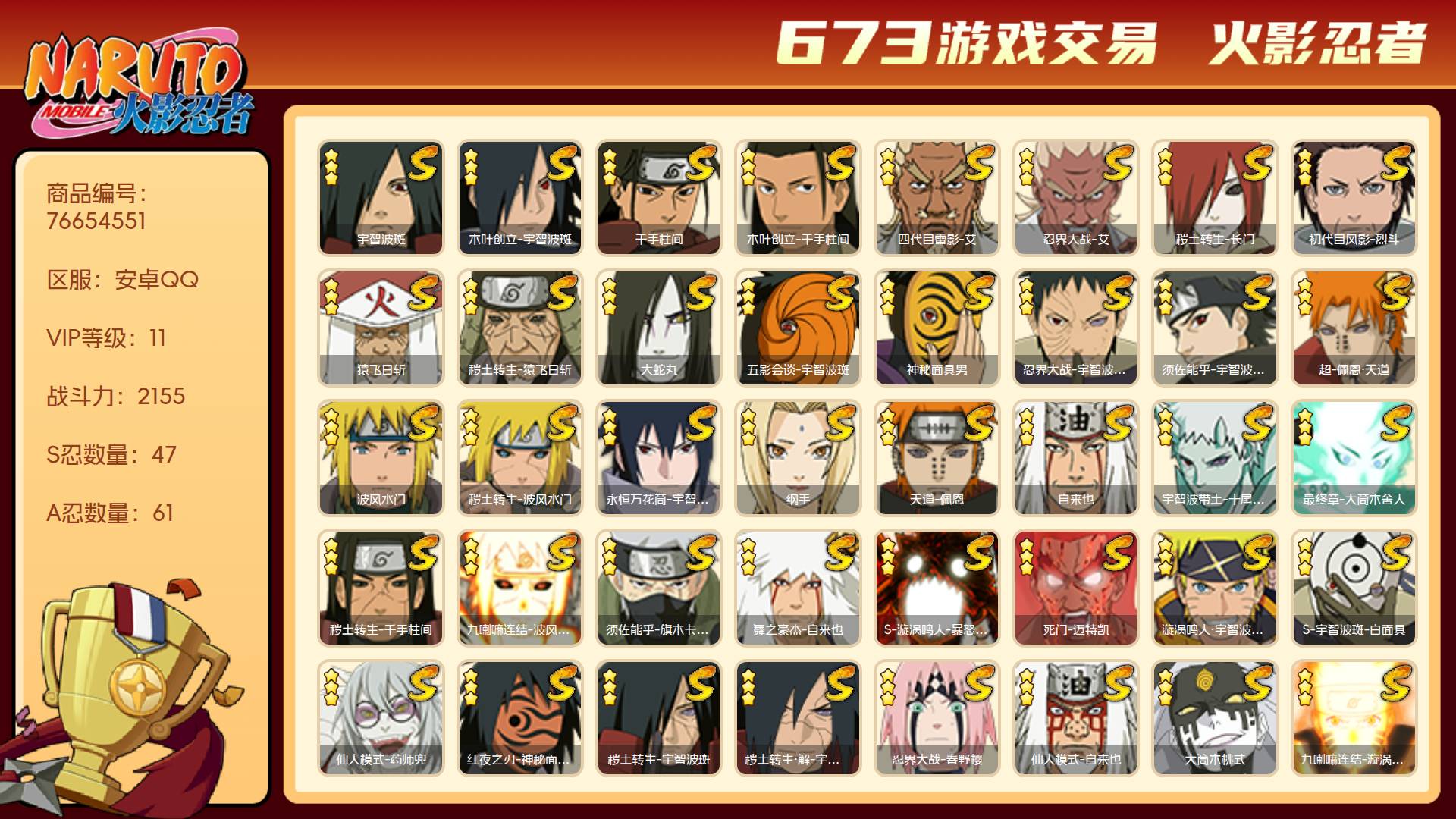 安卓QQ♦20万金币号+百战水门+川自+百战佩恩+百战鼬+青水♦