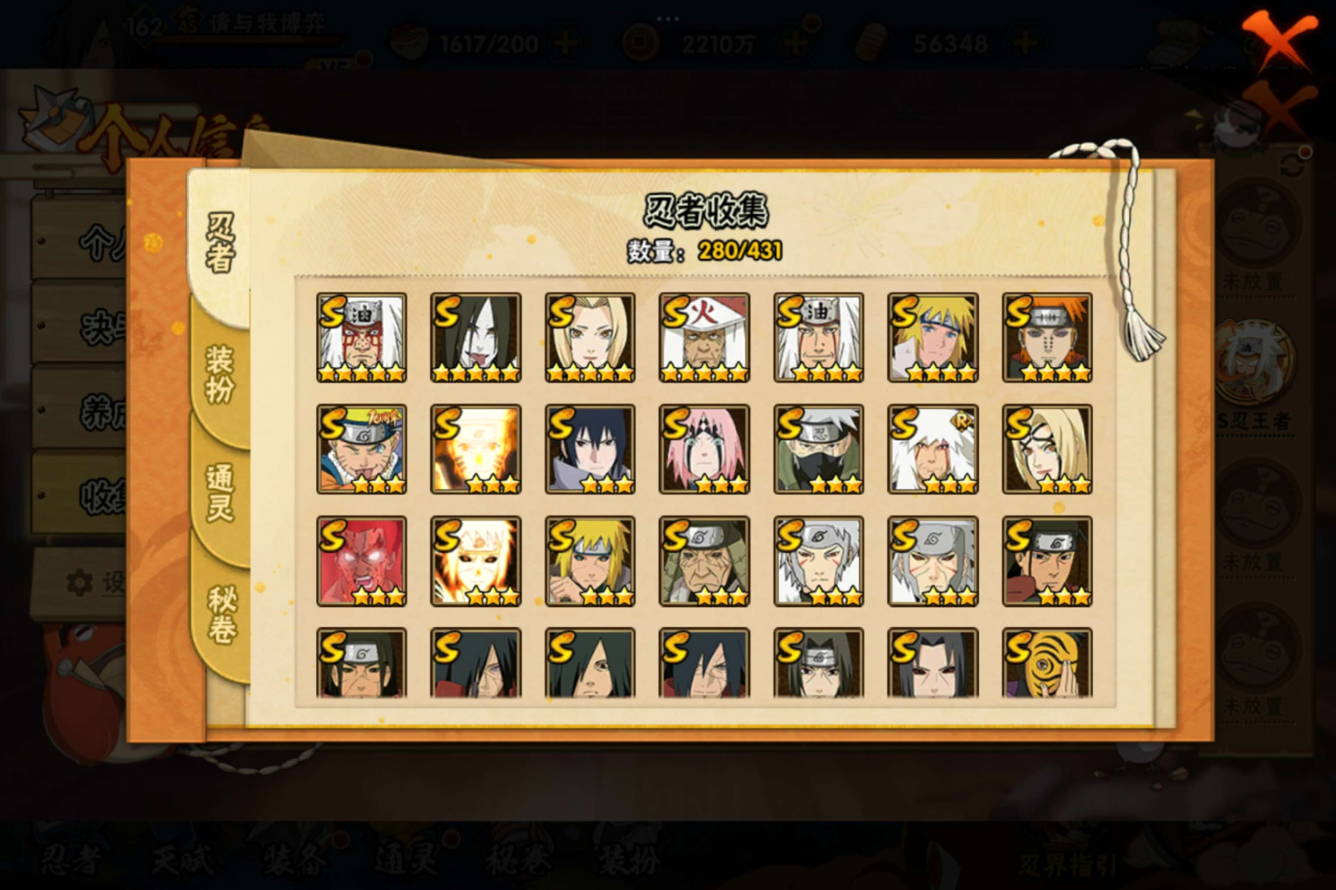 S忍者数:38- A忍者数:57-2400万战力-购买了忍