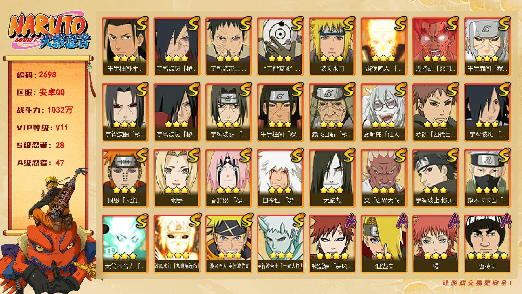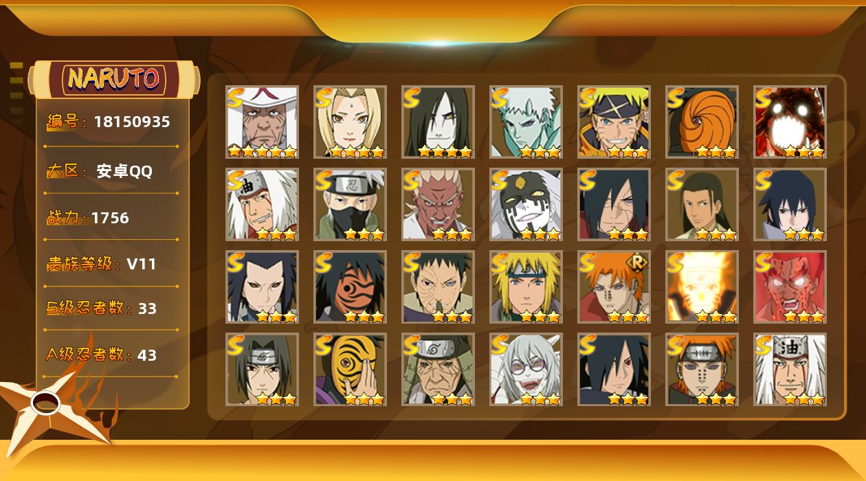 QQ安卓-火影成品号-S忍者数:35- A忍者数:50-战