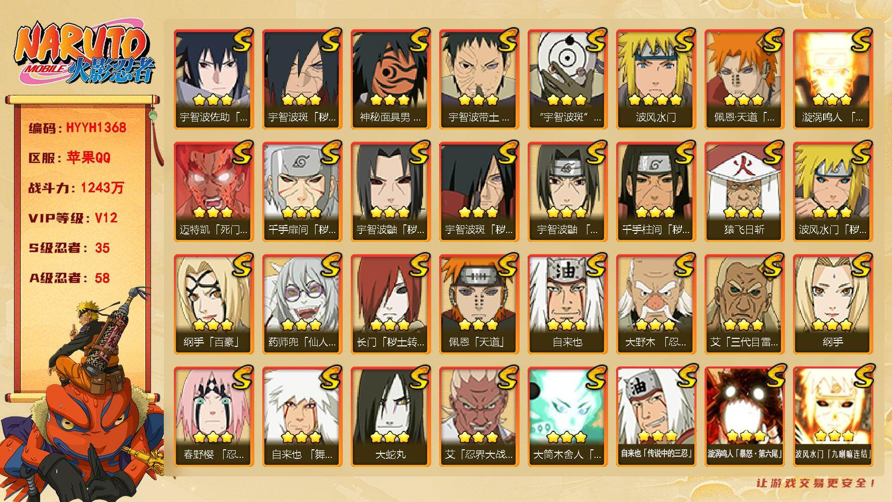 QQ安卓-火影成品号-S忍者数:35- A忍者数:50-战