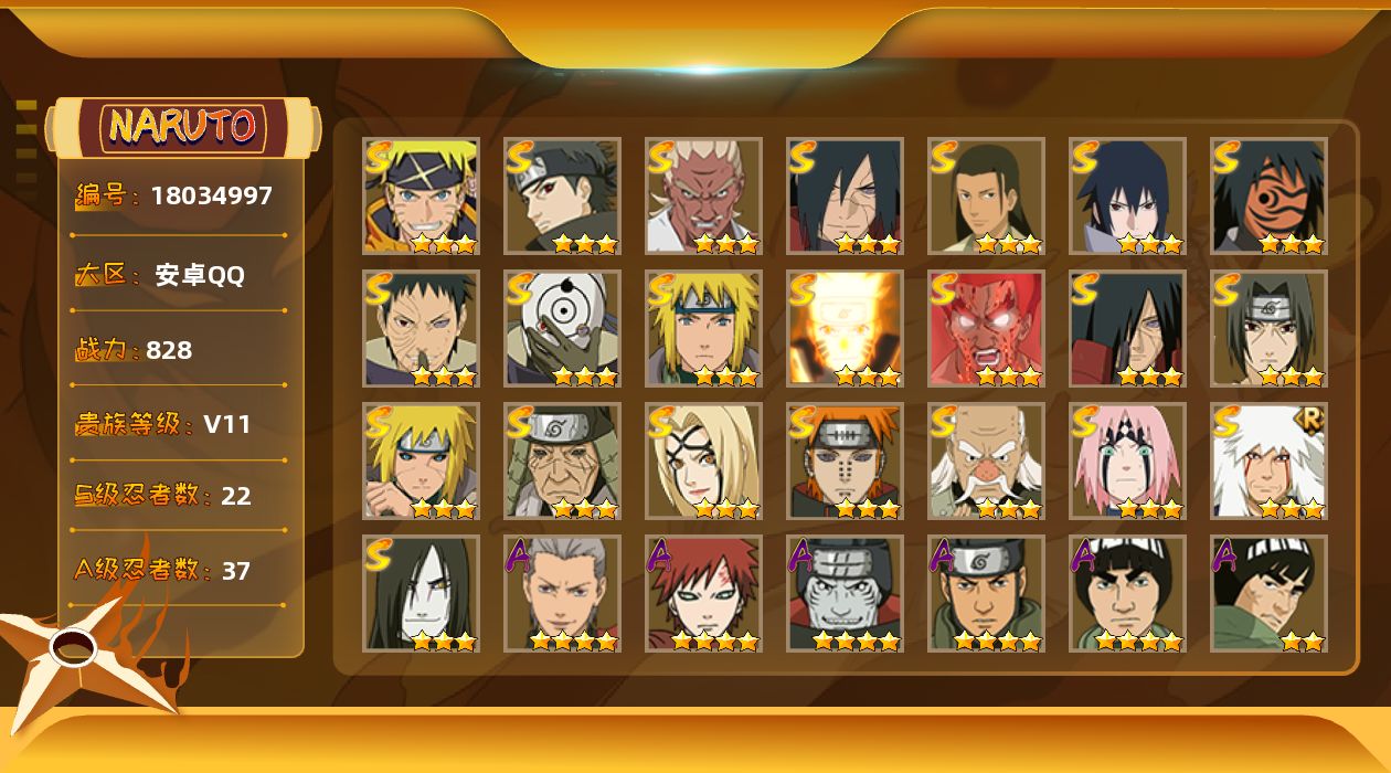 本服74名,创立柱间80片,十尾带土64片,大野木81片,金银角90片,最终章