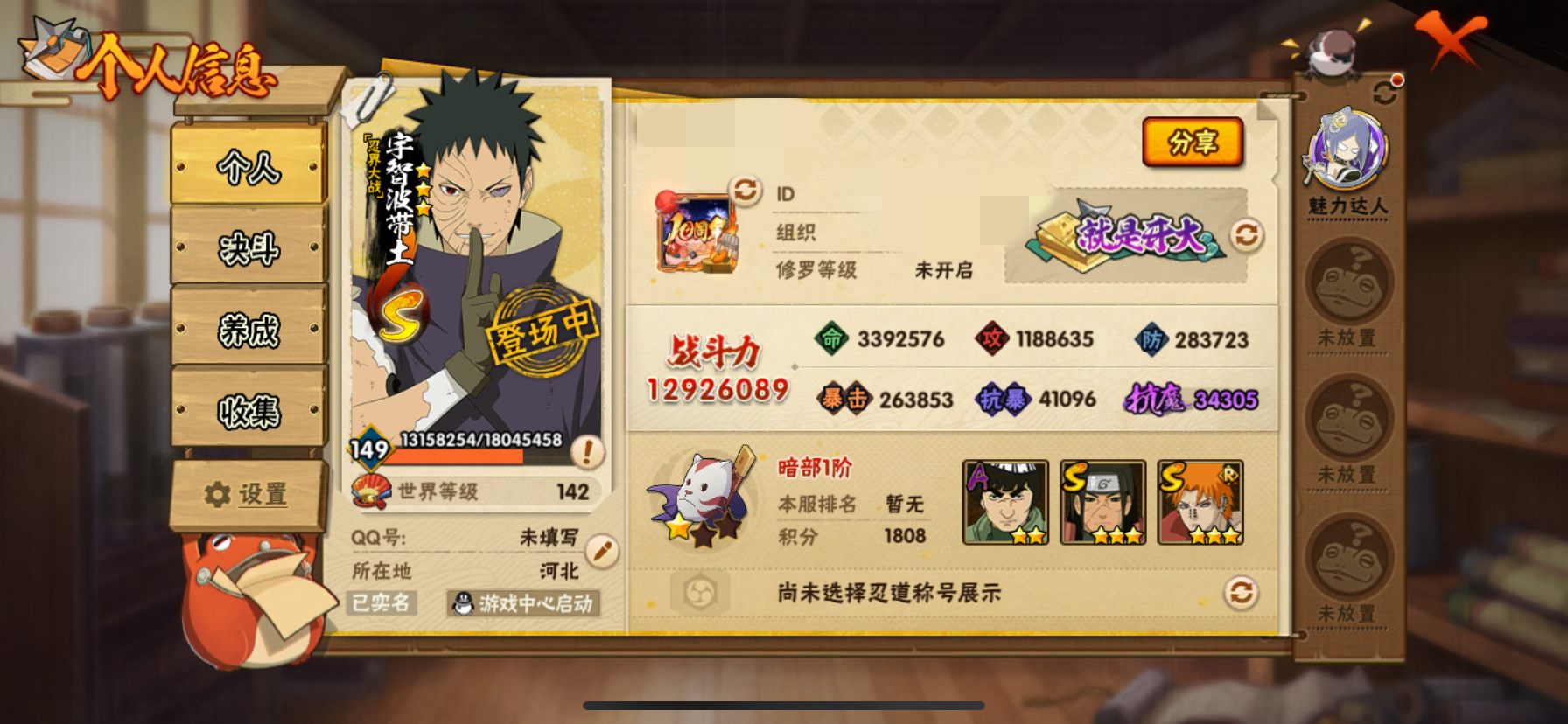 安卓QQ-S忍者数:29- A忍者数:43【S级忍者】宇智