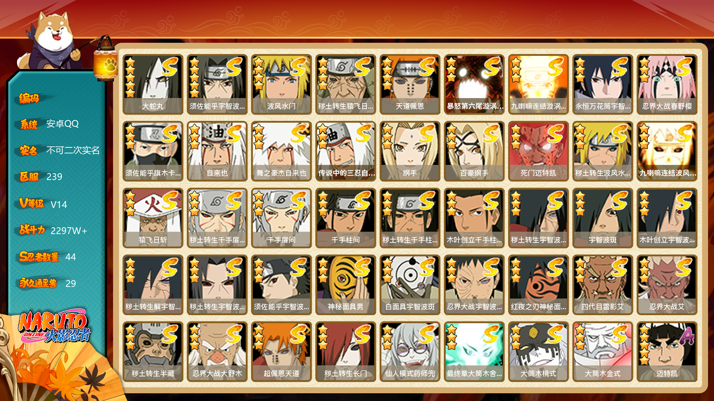 413全忍者3w金币可以忍全网最全火影号之前买过全赔的不用买全赔 全通灵全奥义全全服第二