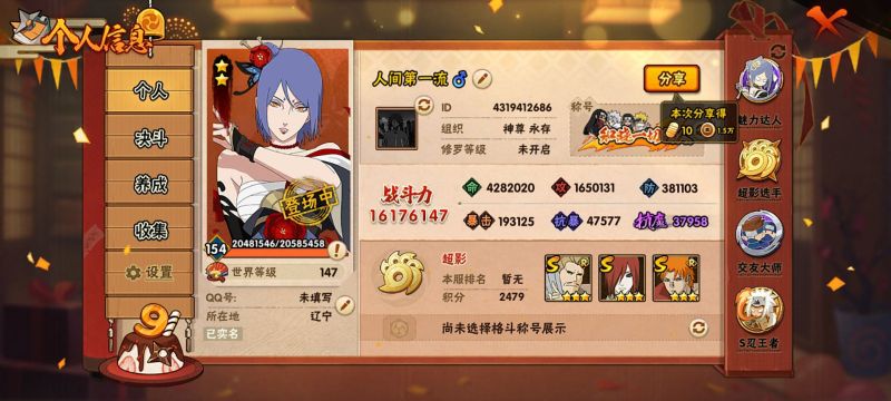 V15 1203万战力 41S级忍者数-78A级忍者数 有熊猫,有648奥义图