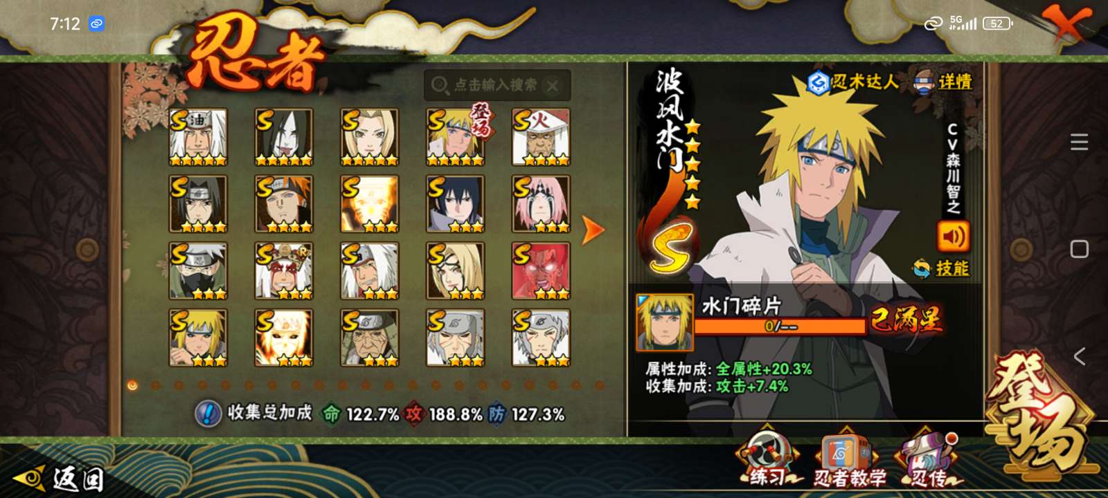 V14 2370万战力 49S级忍者数-72A级忍者数 有熊猫 有648奥义图
