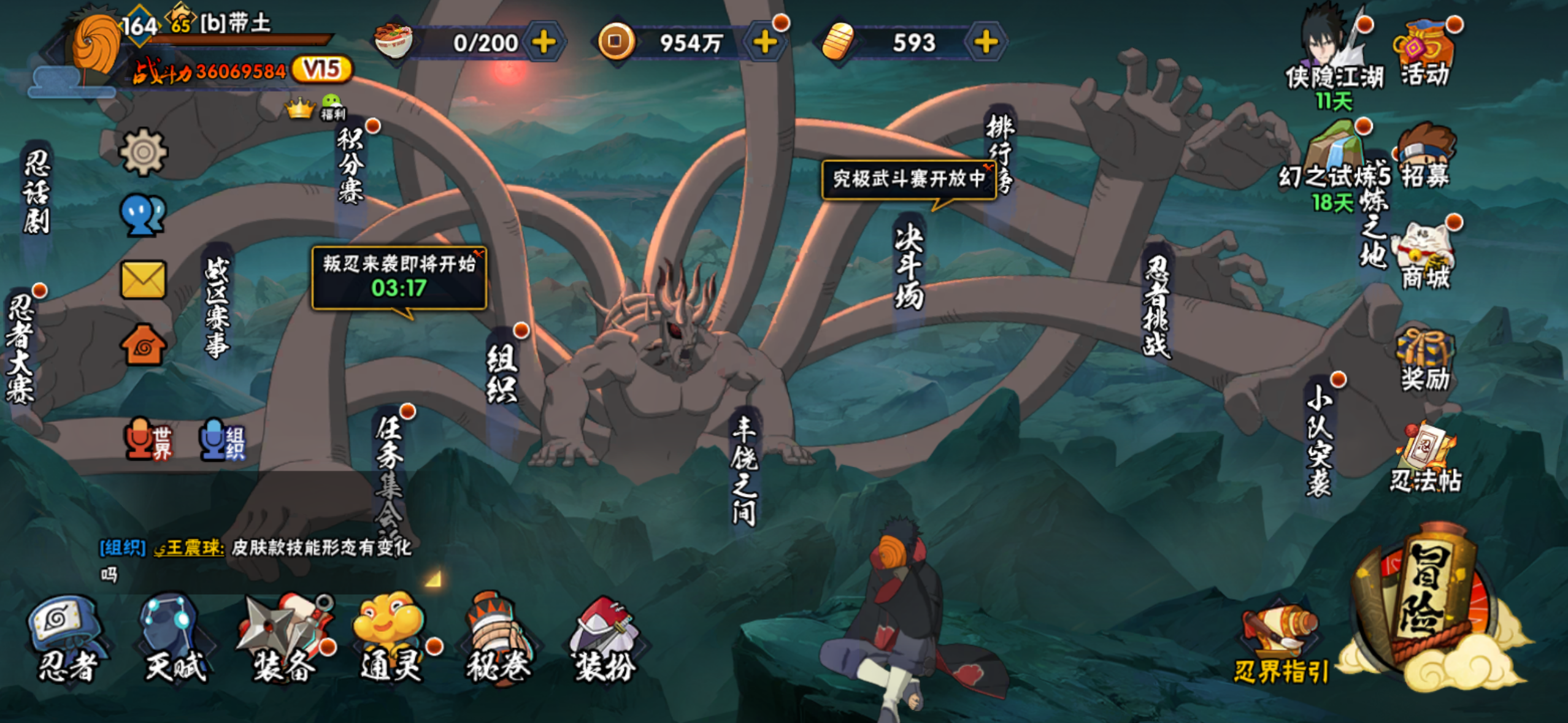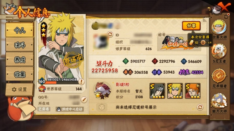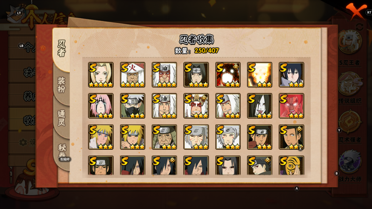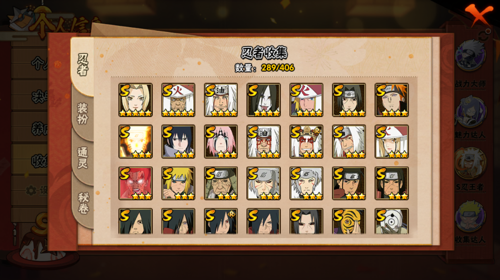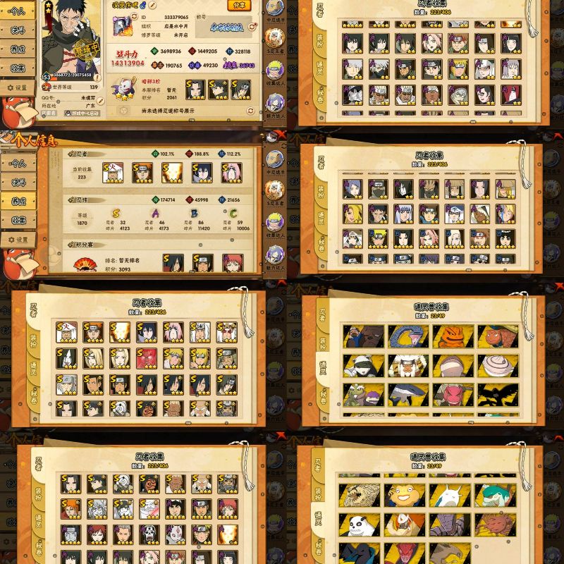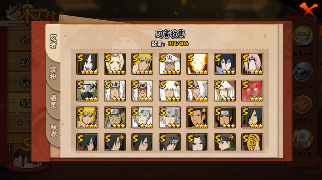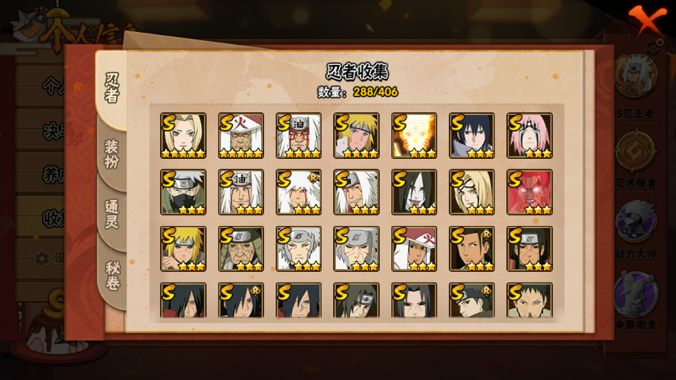 火影忍者【安卓QQ】V15/2011万战力/总忍者393/49S/94A/差5个满S(烈斗44片/