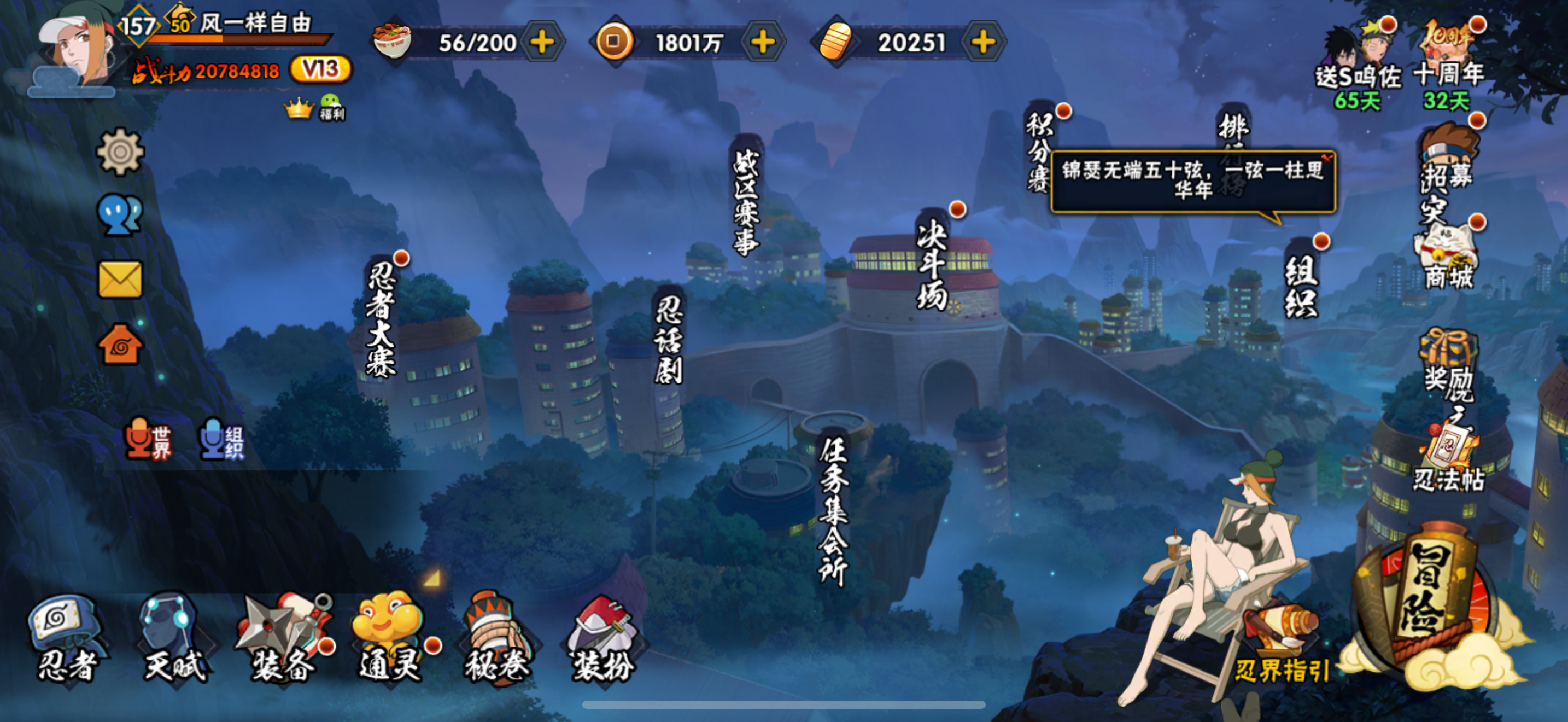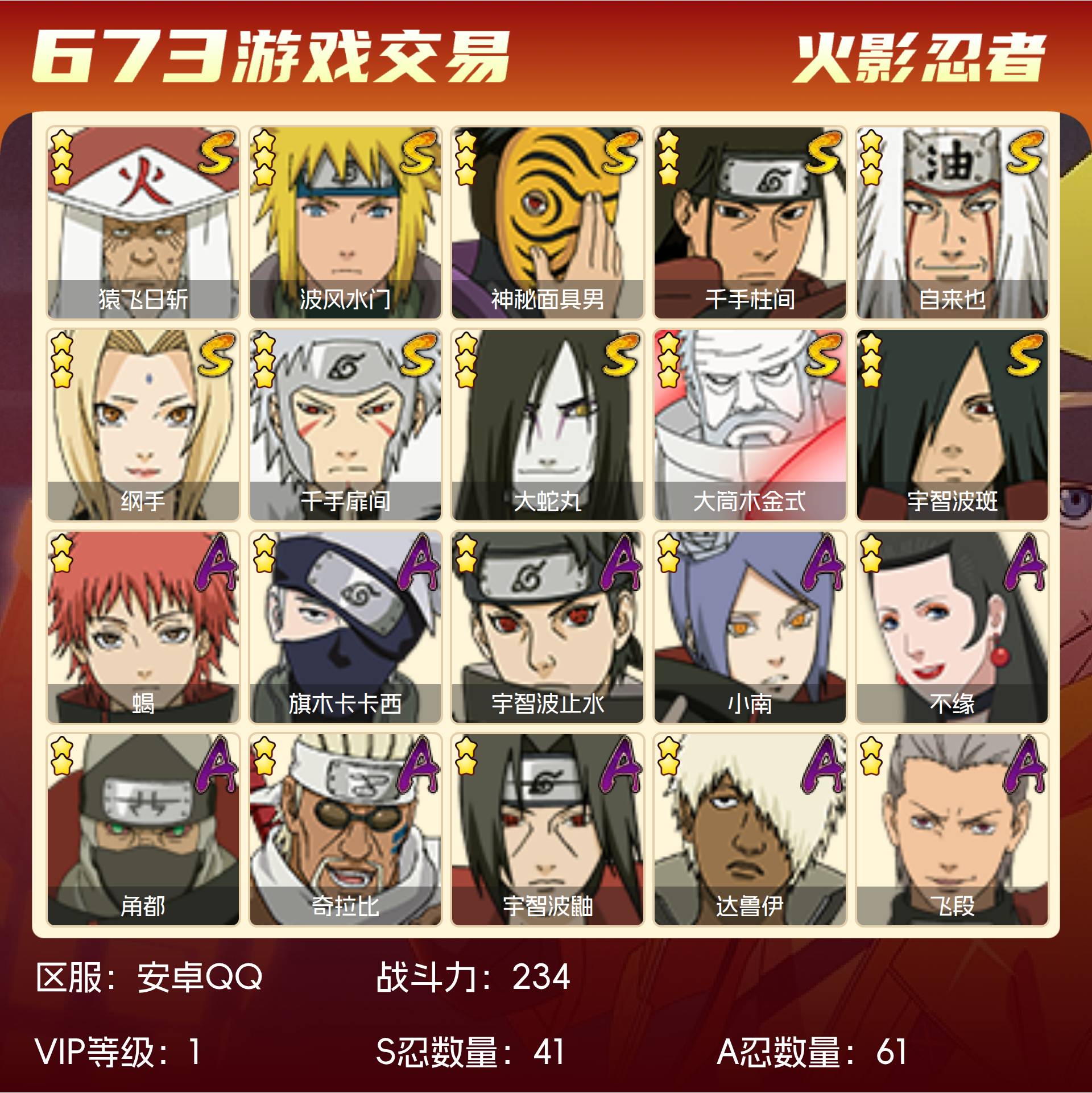 角色等级123 金币132 战斗力123 S忍41 A忍61 5星S忍者123 1 段位新生