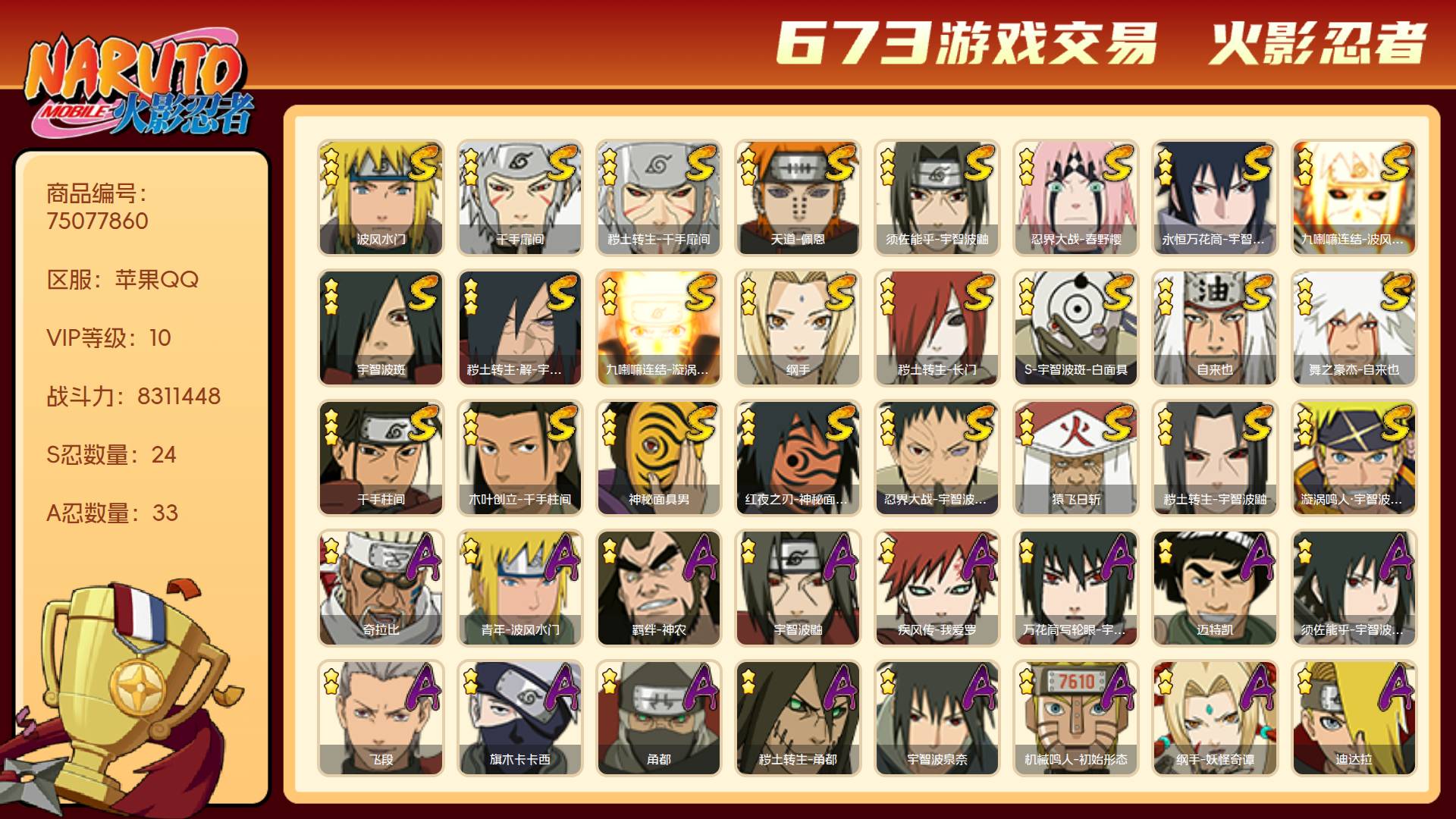 v11 22S 41A 1152w战力 无63片 2个主场景:最终章 木叶周年