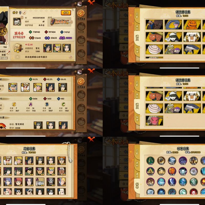 IOS/9S忍/23A忍/战力559W/V7/区服633 【S忍者】宇智波佐助「漩涡鸣人」,宇智波佐助「永恒万花筒」,自来也「舞之豪杰」,宇智波斑「秽土转生」,宇智波鼬「须佐能乎」