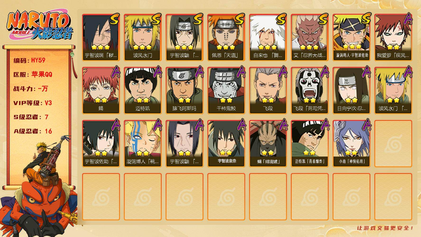IOS/7S忍/14A忍/战力279W/V2/区服3330【S忍者】宇智波佐助「漩涡鸣人」,